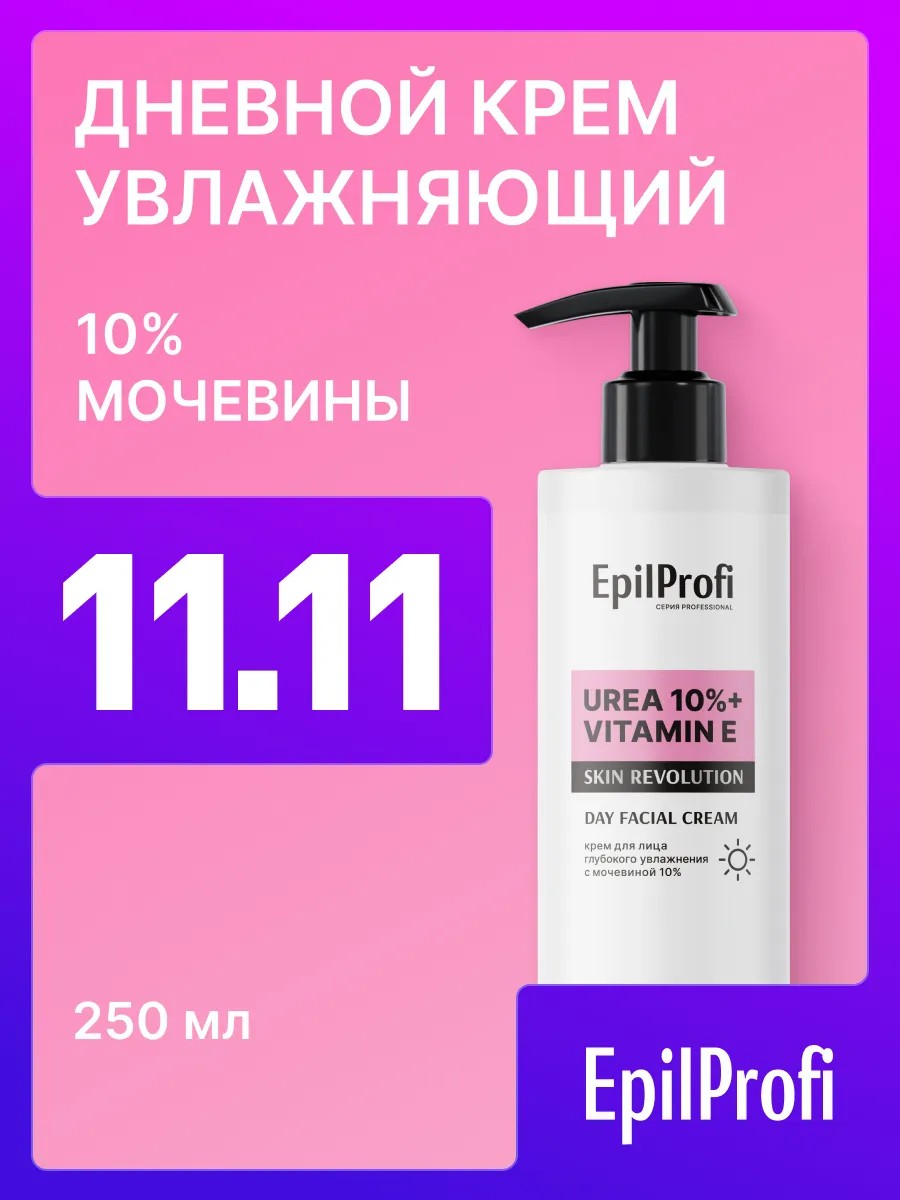 Увлажняющий крем для лица с мочевиной 10% 250 мл EpilProfi. Средство в новой надёжной упаковке с дозатором обеспечивает гигиеничное использование, дозатор позволяет легко получить необходимую порцию крема. Мочевина интенсивно увлажняет, устраняет зуд и шелушения. Витамин Е успокаивает раздраженную кожу, выравнивает её тон и устраняет ощущение стянутости и сухости. Масла кокоса и оливы смягчают кожу и оказывают антивозрастной уход. Питательный крем для лица легкий по текстуре, быстро впитывается и не оставляет жирную пленку на лице. Применять утром или вечером в качестве основного ухода. Для ежедневного ухода за кожей лица. Косметическое средство может применяться для ухода за лицом, после тоника для лица с кислотами, пилинга, скраба, сыворотки для лица и в качестве основы под макияж. Подходит для нормальной, жирной и сухой кожи. Для кожи с куперозом, чувствительной и проблемной.