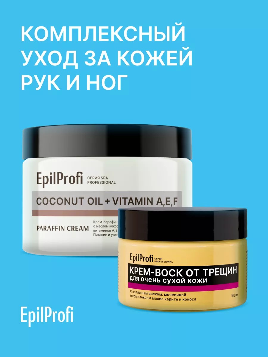 Супернабор для ухода за кожей рук и ног от EpilProfi: крем-воск от трещин, натоптышей и мозолей для очень сухой кожи 100 мл + крем-парафин для рук, ног, пяток, кутикулы и ногтей с маслом кокоса и комплексом витаминов А, Е, F 300 мл.