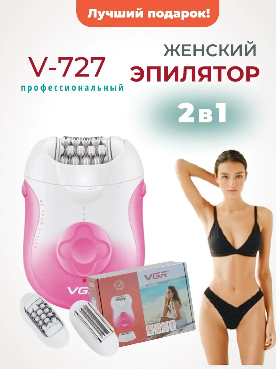 The VGR V-727 2-in-1 Women's Set is a multifunctional device for women: an electric epilator and a razor with a shaver. Designed to remove unwanted hair from various areas of the body, including the face, bikini area, and underarms. The universal VGR V-727 women's epilator is battery-powered. The cordless mode allows you to use the device anywhere, without the ties of wires. The capacious 600 mAh battery provides 60 minutes of continuous operation. It is easily charged from any device in 1.5 hours. The epilator has 32 tweezers, allowing you to catch all hairs, from women's hair to the smallest ones. And two speeds of 1200 rpm and 1500 rpm allow you to choose the comfortable mode just for you. The compact size of only 9.8 x 6.8 x 3.3 cm, lightweight only 150 grams. Its ergonomic shape and easy-to-use design make it convenient to use and store. It's easy to hold, allowing for precise movements, especially in hard-to-reach areas. It's easy to take the epilator with you on trips, vacations, or business trips. How to choose an attachment? Women's epilator: Ideal for legs, arms, and the bikini area. Women's razor: Suitable for sensitive areas such as the underarms and bikini line. The VGR V-727 epilator is an excellent choice for those who want long-lasting smooth skin. Its versatility and effectiveness make it an indispensable addition to your beauty kit. A great gift for a woman, girlfriend, friend, mother, or daughter.