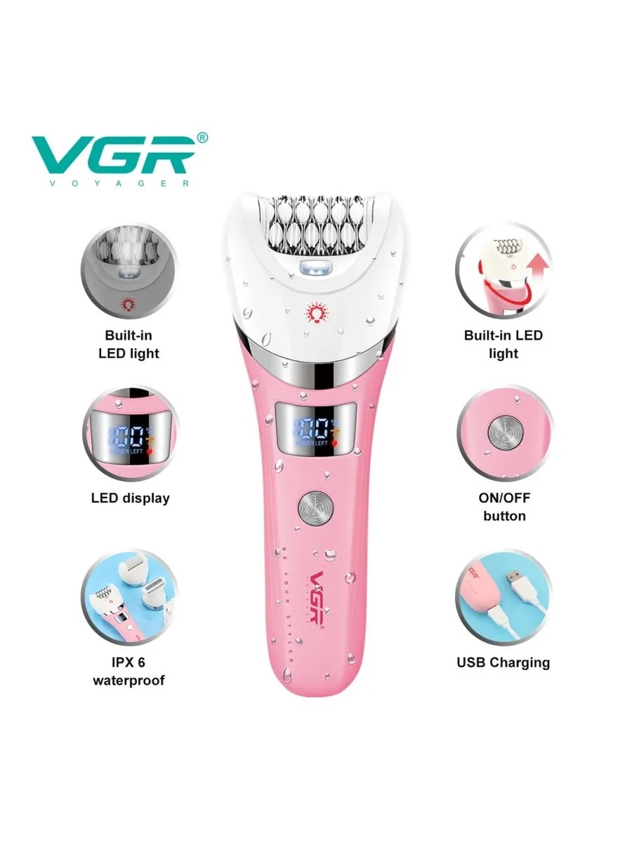 КомплектацияЭпилятор Набор 5в1 VGR V-759 Розовый