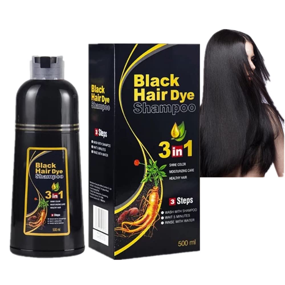 SAVING MONEY FROM APPOINTMENT --Stop spending hundreds of dollars in salon for hair black dye. Our shampoo can dye your hair black at home, which can last 3-4 weeks. 500ML shampoo is available for around 10 applications. EASY TO USE -- No need to mix in advance and hassle-free to dye hair at home, super easy and quick to apply. Wear the gloves in the package, apply brown hair dye shampoo on hair, rub it evenly for 5-10 minutes,and hold it on for 15-20 minutes, then rinse. You can have natural brown hair immediately. NOURISHING & REPAIRS -- strengthens the roots and makes the hair strong and soft. Moroccan oil and ginseng extract nourish the strands and your hair will be saturated with nutrients and long-lasting color. Doesn't damage hair. 100% GRAY HAIR COVERAGE -- dark brown hair color shampoo is designed to reverse hair graying,and cover gray hair 100% effectively, which suits for all hair type. Make you looks younger and no longer be annoyed by gray hair. 3 IN 1 BLACK HAIR DYE -- It can be used as hair black dye, hair conditioner and hair shampoo.Very convenient to make hair dye black at home and save our precious time from salon visiting.