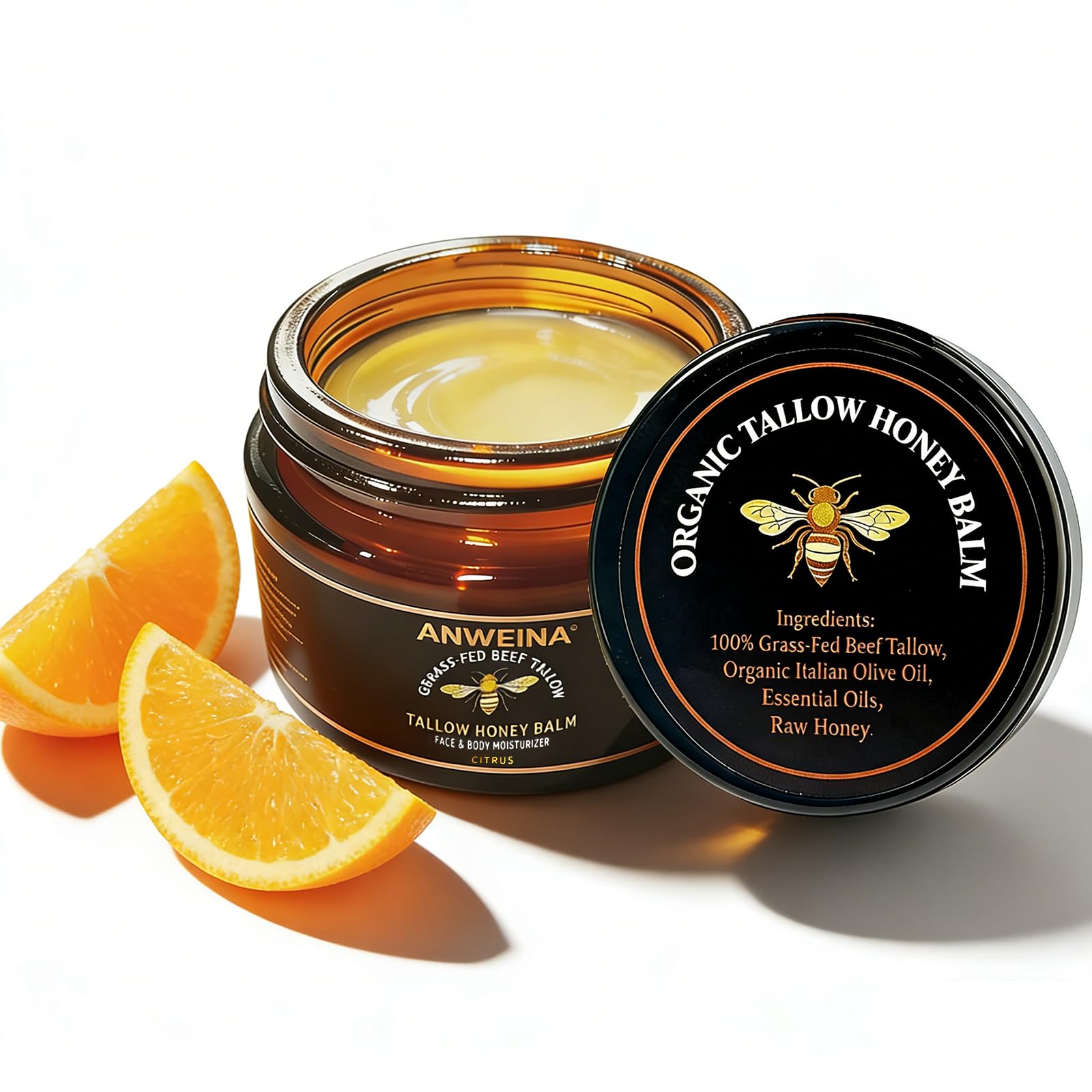 Eqimznv Beef Tallow for Skin, Organic Grass-Fed Beef Tallow Balm with Row Honey, Tallow and Honey Balm, Tallow Face Moisturizer for Face Body, Natural Formula for Dry & Sensitive Skin (2 OZ, Citrus)
