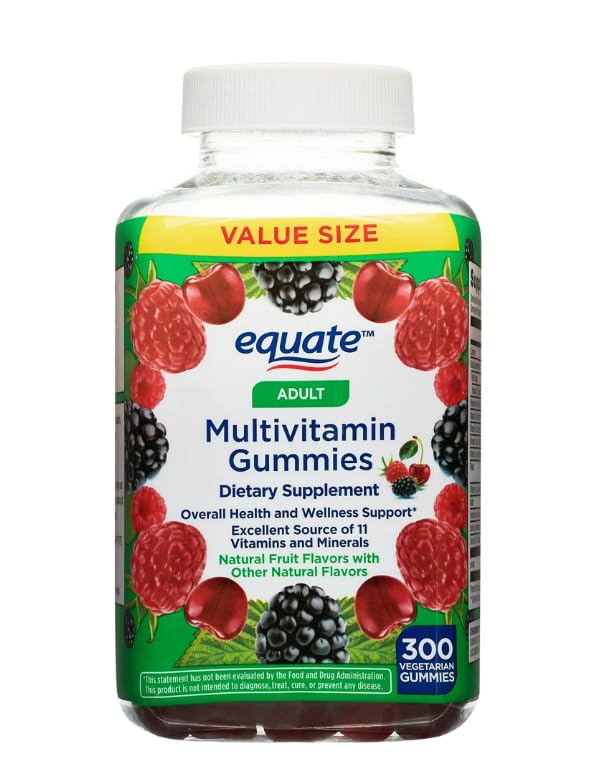 Equate Adult Multivitamin Gummies for General Health Natural Fruit Flavor 300 Count