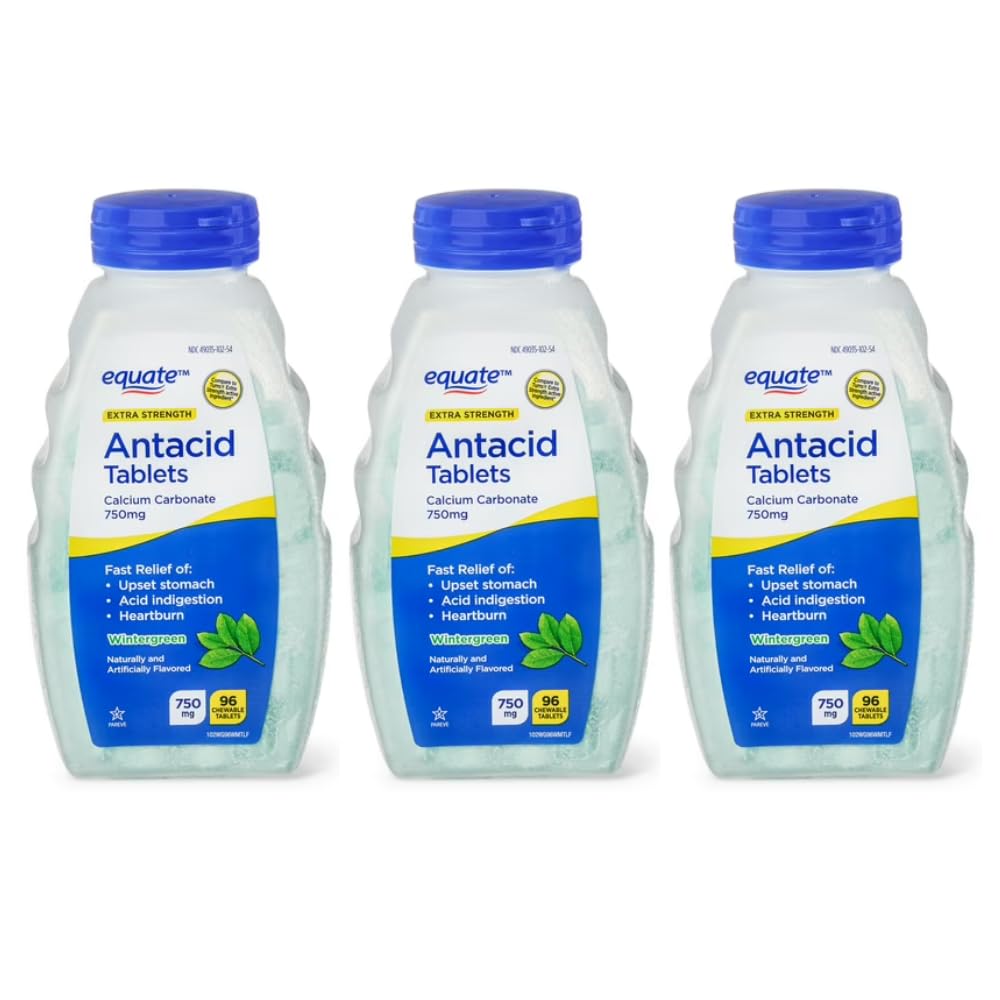 Includes Pill Organizer. Extra Strength Antacid Chewable Wintergreen Tablets, 750 mg, 96 Ct. Antacid Chewable Wintergreen Tablets, 750 mg. Extra Strength Antacid Chewable Wintergreen Tablets. Extra Strength Antacid Chewable Wintergreen Tablets, 750 mg, 96 Ct Pack of 03 Total 288ct.
