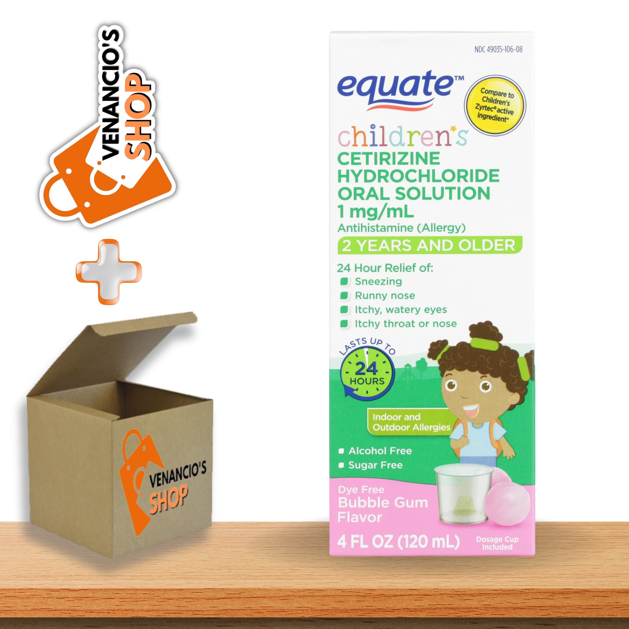 Compare to National Brand active ingredient. One dose of this medicine provides 24 hour relief of children's indoor & outdoor allergy symptoms: sneezing; runny nose; itchy, watery eyes; itchy throat or nose. For ages 2 and over. No Sugar, dye, alcohol and gluten free: peace of mind for parents, all-day allergy symptom relief for kids, in one single dose in a flavor made for them. Simply follow the instructions on the package and use the provided dosage cup. Tend to allergy symptoms with Equate Children's Allergy Relief Oral Solution. Making the right health decisions can be challenging. With a complete range of products and simple solutions, Equate allows you to take care of your family with confidence.
