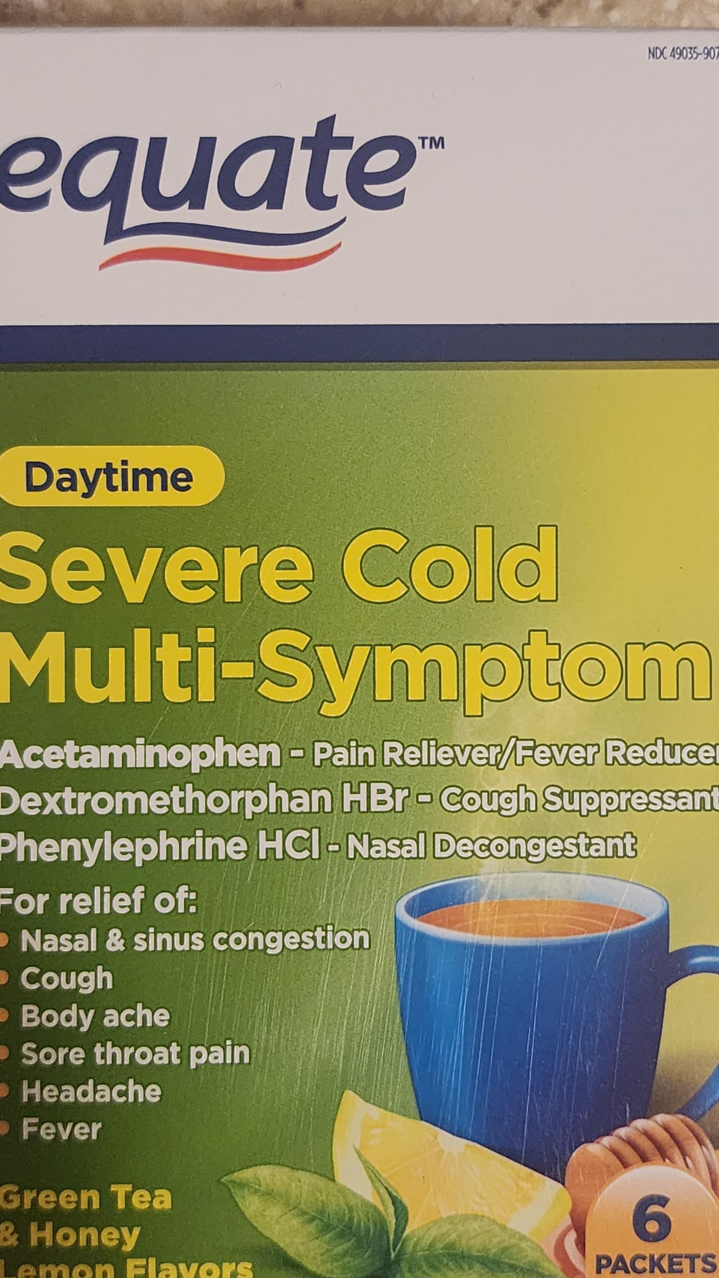 Equate Daytime Severe Cold Multi-Symptom Green Tea Honey Lemon 6 Little Packets