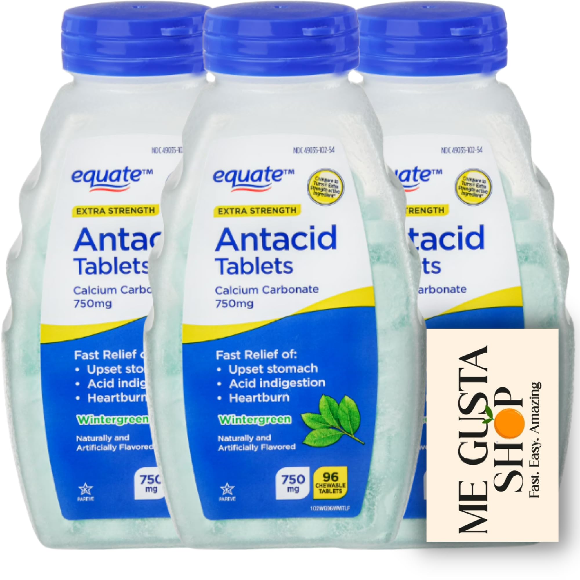 Equate Extra Strength Antacid Chewable Wintergreen Tablets 750 mg 96 Ct Pack of 03 Total 288ct + me Gusta Sticker