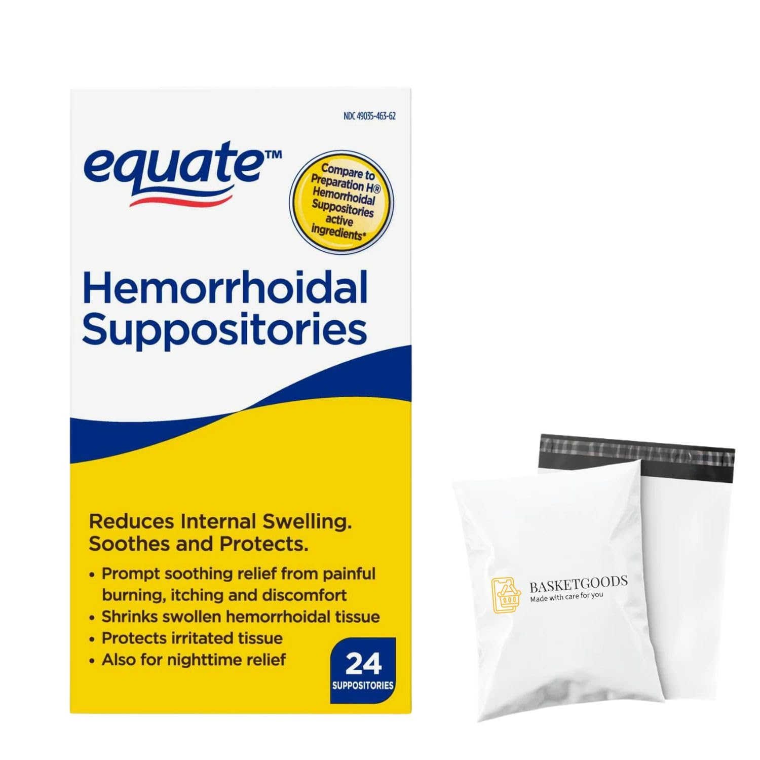 Equate Hemorrhoidal Suppositories Relief from Burning Itching and Discomfort of Hemorrhoids 24 Count (Pack of 1) - Set by Basket Goods