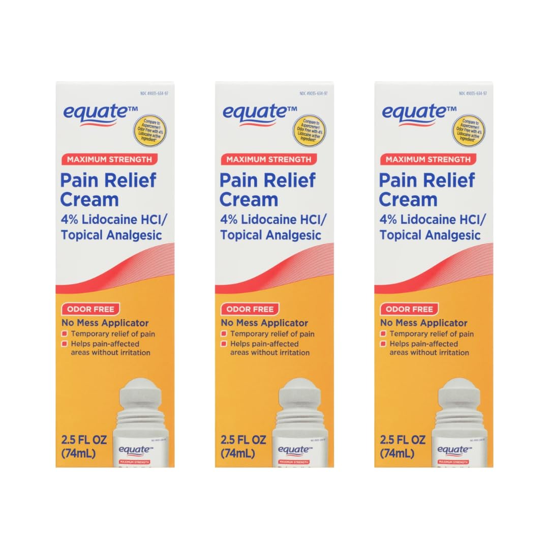 Equate Max Strength Lidocaine Pain Relief Cream for Body Aches 2.5 fl. oz. (3 Pack)