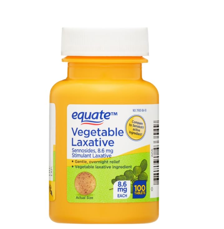 Equate Natural Vegetable Laxative Sennosides Tablets - 100 Count - Gentle Overnight Constipation Relief Supports Digestive Health