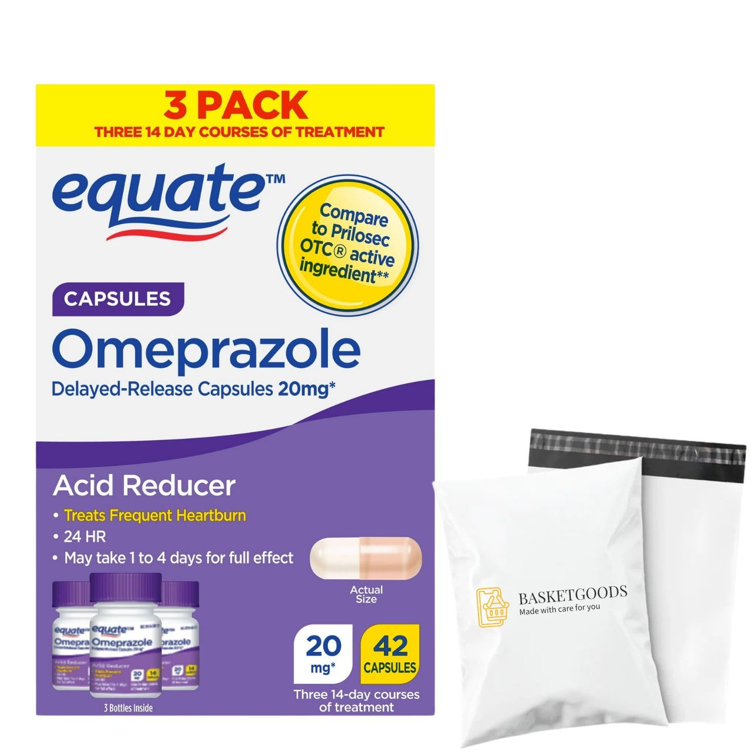 Equate Omeprazole Delayed Release 20 mg Acid Reflux & Heartburn Treatment - Set by Basket Goods