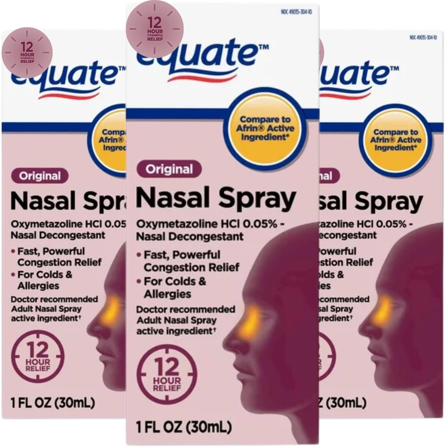 Equate Original 12 Hour Nasal Spray Max Strength 1 Fluid Ounce - Original Nasal Spray - Pack of 3