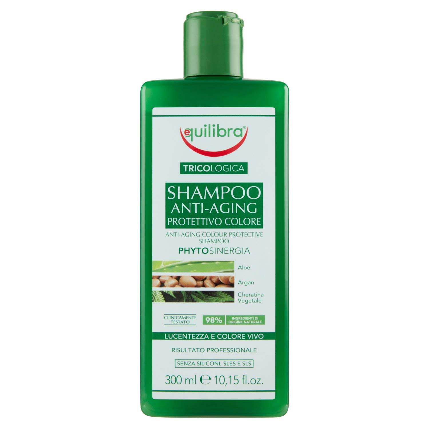 Equilibra Hair Shampooing Anti-âge Protection Protection Cheveux Colorés Brillance à Base de Noix Vertes Aloe Vera Huile d'Argan 300ml