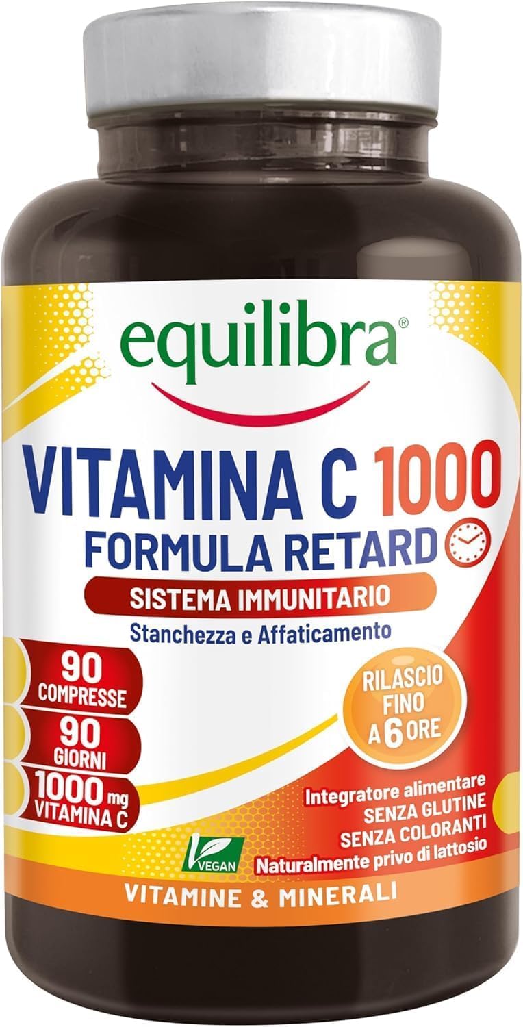 EQUILIBRA: a leader in natural food supplements and cosmetics for over thirty years, with products that are the result of a balance between respect, effectiveness, well-being, and beauty. DELAY TECHNOLOGY: the innovative DELAY technology allows for the gradual release of vitamin C over time, up to 6 hours, to facilitate progressive absorption by the body. TO BE TAKEN DAILY: 1 tablet per day, preferably after meals, provides 1000 mg of Vitamin C. You can divide the tablet in half thanks to the pre-scored line. FEATURES: for the normal function of the immune system and the reduction of fatigue, protects cells against oxidative stress, and increases iron absorption. FOR NORMAL IMMUNE SYSTEM FUNCTION: high-dose food supplement with 1000 mg of Vitamin C per tablet, equivalent to 1250 of the daily requirement.