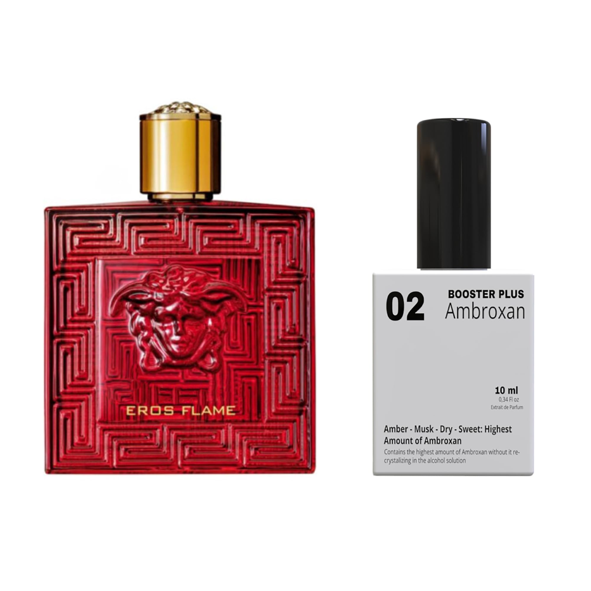 EQUIVALENCE PERFUME BOOSTER PLUS (AMBROXAN MOLECULE 02) TO EROS FLAME Give power to your original perfume 12 hours long lasting Large Bottle not included It is only a reference (AMBROXAN-MOLECULE 02)