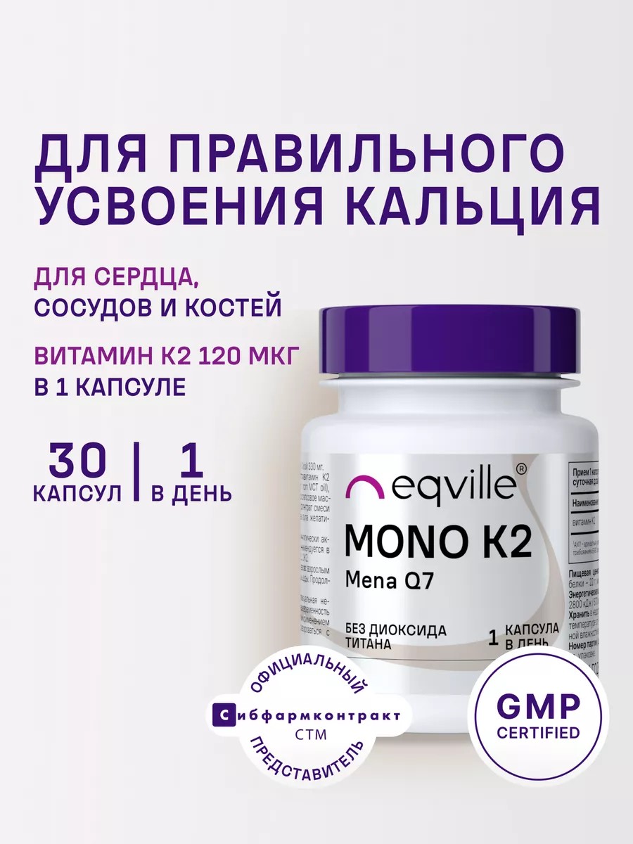 Eqville Витамин к2 мк-7 (Менахинон-7) 120 мкг, 30 капсул