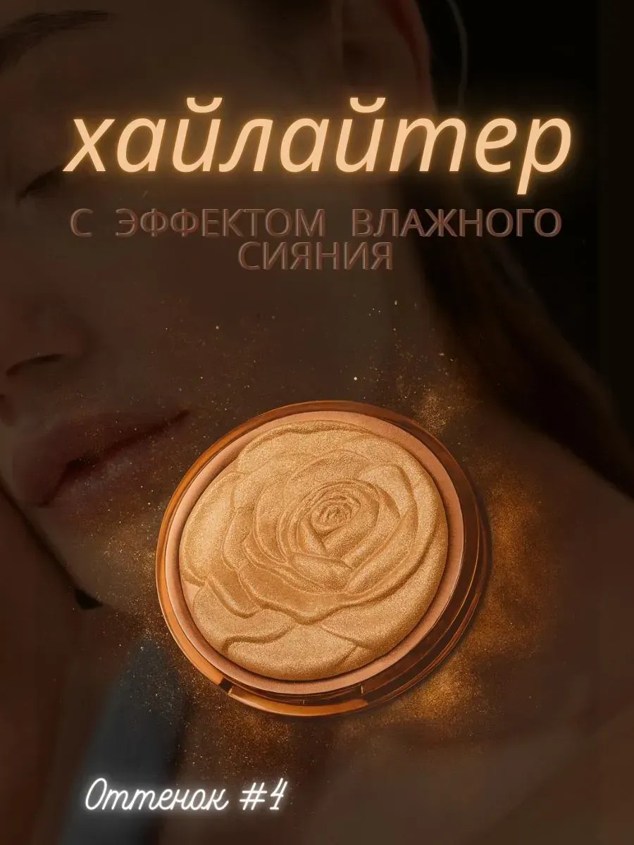 Дизайн в виде розы делает продукт не только косметическим средством, но и украшением косметички. Золотисто-шампанское свечение подчёркивает скулы, надбровные дуги, галочку над губой и другие зоны, создавая эффект здоровой сияющей кожи.