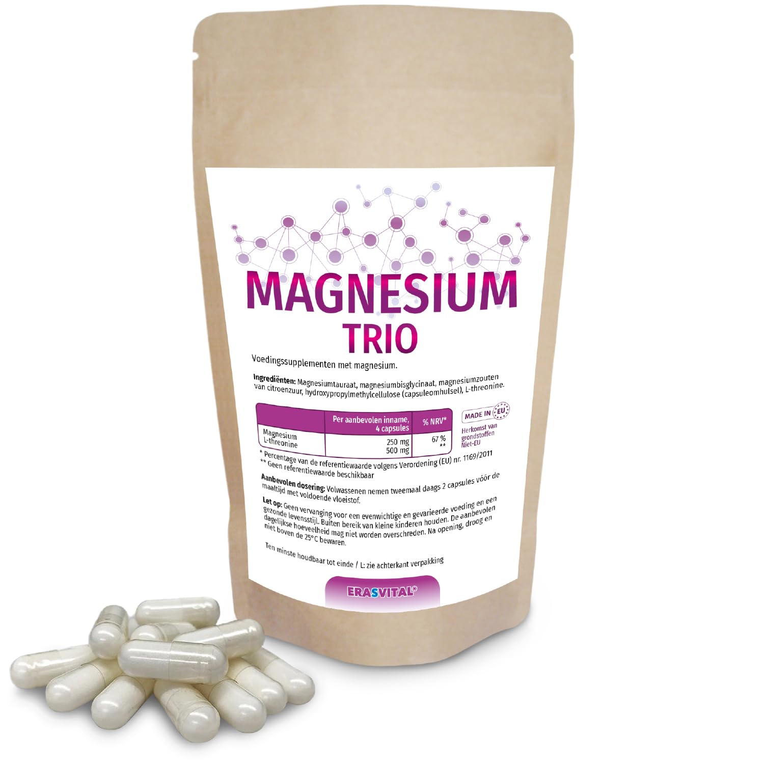 ERASVITAL Magnesium Trio 720 capsules 5month supply with magnesium taurate magnesium bisglycinate magnesium citrate and Lthreonine ideal for a target group interested in mental health