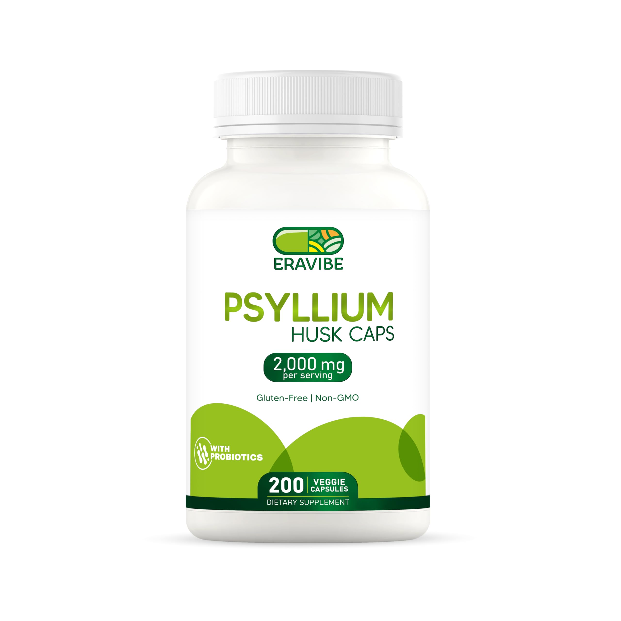ERAVIBE Psyllium Husk Capsules with Probiotics 100 Million CFUs Fiber Supplement for Digestive and Gut Support 200 Count Plant-Based Natural Fiber