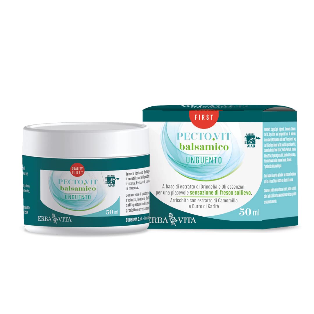 Provides healing relief: thanks to the synergistic action of the grindelia extract and the blends of essential oils of pine, eucalyptus, mint, lavender and thyme enriched with: chamomile extract, shea butter and rice wax, known for its soothing and soothing properties. The ingredients used also make the product ideal for sensitive skin such as children's skin. Format: Pack of 50 ml How to use: Distribute the product on the chest, massage in the evening before going to bed and until the entire intake of grass Vita: Since 1982 we have specialized in the production of herbal nutritional supplements. The phytherapeutic tradition, the strict scientific method and the most advanced technologies merge into a perfect balanceERBA VITA: Since 1982 we have specialized in the production of herbal nutritional supplements. The phythotherapy tradition, the rigor of the scientific method and the most advanced technologies merge into a perfect balance. Use: Apply the product to the chest in the evening before going to bed and massage until completely absorbed. Size: 50 ml. Enriched with: chamomile extract, sheat butter and rice wax, known for their soothing and soothing properties. The ingredients used also make the product ideal for sensitive skin such as children's skin. Relieves breathing from grindelia extract and blends of essential oils from pine, eucalyptus, mint, lavender and thyme.ERBA VITA Pecto.Vit Biologische balsamico zalf voor buiten voor een aangenaam gevoel van frisheid en ontlasting van de luchtwegen, 50 ml Geeft verlichting van genezing: dankzij de synergetische werking van het grindelia-extract en de mengsels van etherische oliën van grenen, eucalyptus, munt, lavendel en tijm verrijkt met: kamille-extract, sheaboter en rijstwas, die bekend staan om zijn rustgevende en rustgevende eigenschappen. De gebruikte ingrediënten maken het product ook ideaal voor de gevoelige huid zoals kinderhuid. Formaat: Verpakking van 50 ml Hoe te gebruiken: Het product op de borst verdelen, 's avonds voor het slapengaan inmasseren en tot de volledige inname van gras Vita: Sinds 1982 zijn wij gespecialiseerd in de productie van plantaardige voedingssupplementen. De fytherapeutische traditie, de strenge wetenschappelijke methode en de meest geavanceerde technologieën versmelten tot een perfecte balansERBA VITA: Sinds 1982 zijn wij gespecialiseerd in de productie van plantaardige voedingssupplementen. De fythotherapie-traditie, de strengheid van de wetenschappelijke methode en de meest geavanceerde technologieën versmelten tot een perfect evenwicht. Gebruik: het product 's avonds voor het slapengaan op de borst verdelen en tot volledige absorptie inmasseren. Formaat: 50 ml. Verrijkt met: kamille-extract, sheatutter en rijstwas, bekend om hun rustgevende en rustgevende eigenschappen. De gebruikte ingrediënten maken het product ook ideaal voor de gevoelige huid zoals kinderhuid. Verlicht de ademhaling van grindelia-extract en mengsels van etherische oliën uit den, eucalyptus, munt, lavendel en tijm.