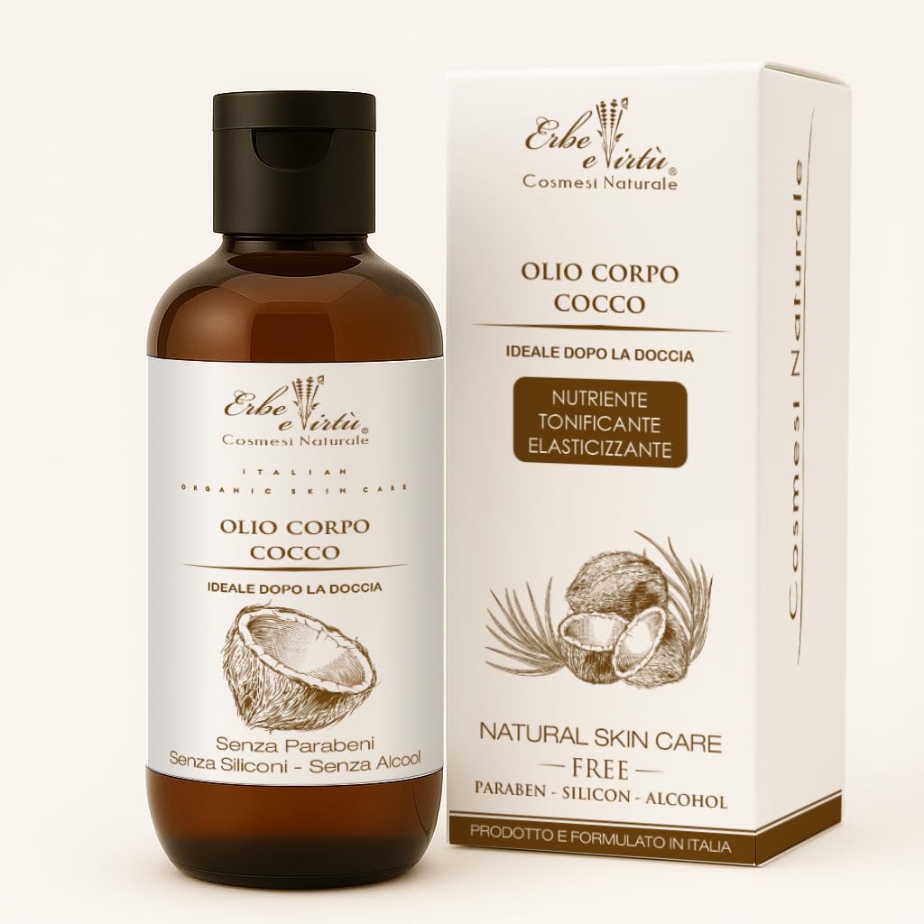Rediscover the pleasure of velvety, nourished, and radiant skin. Let yourself be enveloped by the delicate touch of a moisturizing body oil that transforms your routine into a true beauty ritual. Its light, silky texture melts into the skin, providing deep hydration, long-lasting nutrients, and a refined fragrance that caresses the senses. Ideal after showering, perfect for all skin types, even the driest or most sensitive. A daily caress to rediscover the well-being of your body. Directions for use: Apply with a light circular massage from the bottom up until completely absorbed. Perfect after showering or bathing. Warnings: No contraindications under normal use. Avoid contact with eyes, mucous membranes, and open wounds. Check for sensitivity to the ingredients in the formula. Natural product: Each batch may vary in color and texture, but this does not affect the quality of the product. Store in a cool, dry place. INGREDIENTS Prunus Amygdalus Dulcis Oil, Persea Gratissima Oil, Triticum Vulgare Germ Oil, Jojoba Esters, Tocopheryl Cocos Nucifera Oil Acetate, Coumarin, Parfum (Fragrance). SAFETY WARNING No contraindications in normal procedures. Avoid contact with eyes, mucous membranes, and open wounds. Check for sensitivity to the ingredients in the formulation. See moreMade in Italy and paraben-free: Discover Italian craftsmanship with our natural body oil, free from parabens, alcohol, and silicone. A safe and gentle product that respects your skin, ideal for those who prefer to avoid harsh chemicals. Natural ingredients: Herbes et Vertus body oil is enriched with sweet almond, avocado, and coconut oils, all cold-pressed to retain vitamins and antioxidants. Suitable for all skin types, even the most sensitive, for a natural and safe experience. Relaxation and tranquility: The light texture absorbs easily without leaving a greasy residue, making it perfect for a moment of daily relaxation. Its light and refined fragrance envelops the body in an aromatic embrace, transforming skin into a daily wellness ritual. Silky and luminous skin: Ideal after showering, perfect for all skin types, even the driest or most sensitive. This oil is rich in vitamins and essential fatty acids that deeply nourish the skin and restore its barrier. Deep and lasting hydration: instantly provides a feeling of comfort and a radiant appearance to the skin. Perfect for combating dryness, flaking, and dullness. Ideal for a relaxing massage after showering, leaving skin soft and fragrant, ensuring a lasting feeling of well-being.Huile corporelle hydratante – nutritive 200 ml parfum noix de coco – idéal pour peau sèche – Produit naturel 100 fabriqué en ItalieDESCRIPTION DU PRODUIT DESCRIPTION DU PRODUIT Retrouve le plaisir d'une peau veloutée, nourrie et lumineuse. Laissez-vous envelopper par la délicatesse d'une huile corporelle hydratante qui transforme votre routine en un véritable rituel de beauté. Sa texture légère et soyeuse se fond avec la peau, procurant une hydratation profonde, des nutriments durables et une fragrance raffinée qui câline les sens. Idéal après la douche, parfait pour tous les types de peau, même les plus sèches ou sensibles. Une caresse quotidienne pour redécouvrir le bien-être du corps. Mode d'emploi : Appliquer avec un léger massage circulaire du bas vers le haut jusqu'à absorption complète. Parfait après la douche ou le bain. Avertissements : aucune contre-indication dans les procédures normales. Évitez tout contact avec les yeux, les muqueuses et les plaies ouvertes. Vérifier la sensibilité aux composants présents dans la formulation. Produit naturel : chaque lot peut varier dans la couleur et la texture s ance mais affecter la qualité du produit. Conserver dans un endroit frais et sec. INGRÉDIENTS Prunus Amygdalus Dulcis Oil, Persea Gratissima Oil, Triticum Vulgare Germ Oil, Jojoba Esters, Acétate de Tocopheryl Cocos Nucifera Oil, Coumarin, Parfum. AVERTISSEMENT DE SÉCURITÉ Aucune contre-indication dans les procédures normales. Évitez tout contact avec les yeux, les muqueuses et les plaies ouvertes. Vérifier la sensibilité aux composants présents dans la formulation. Voir plusFabriqué en Italie et sans parabènes : découvrez la production italienne avec notre huile corporelle naturelle, sans parabène, alcool et silicone. Un produit sûr et délicat qui respecte votre peau, idéal pour ceux qui préfèrent éviter les produits chimiques agressifs. Ingrédients naturels : l'huile corporelle Herbes et Vertus est enrichie en huile d'amandes douces, avocat et noix de coco, tous extraits à froid pour conserver les vitamines et les antioxydants. Convient à tous les types de peau, même la plus sensible, pour une expérience naturelle et sûre. Relaxation et tranquillité : la texture légère s'absorbe facilement sans graisser, ce qui le rend parfait pour un moment de détente quotidien. Sa fragrance légère et raffinée enveloppe le corps en un câlin aromatique, transformant la peau en un rituel de bien-être quotidien. Cuir soyeux et lumineux : idéal après la douche, parfait pour tous les types de peau, même les plus sèches ou sensibles. Cette huile riche en vitamines et acides gras essentiels qui nourrissent la peau en profondeur et restaurent la barrière cutanée. Hydratation profonde et durable : donne immédiatement une sensation de confort et un aspect radieux à la peau. Parfait pour lutter contre la sécheresse, le desquamation et l'opacité. Parfait pour un massage relaxant après la douche, laisse la peau douce et parfumée, assurant une sensation de bien-être durable.