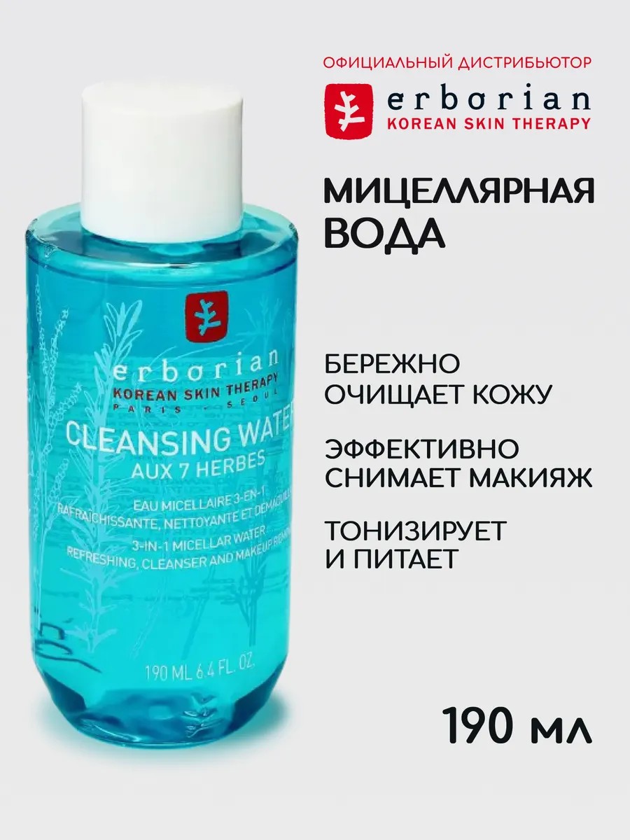 Откройте для себя инновационное решение в уходе - жидкость для снятия макияжа. Корейская косметика считается самой лучшей для красоты кожи. Мицелярка для лица нежно очищает и обогащает полезными компонентами. Уходовая косметика от Эрбориан состоит из 7 трав — настоящее открытие для тех, кто ценит нежность и эффективность. Это средство умывалка действует нежно и эффективно. Благодаря мицеллам, легко справляется даже с водостойким мэйкапом, который требует качественной смывки. Мицеллы в формуле способствуют устранению загрязнений. Окажет тонизирующий эффект. Всего за пару движений вы сможете избавиться даже от стойкого макияжа бровей и ресниц демакияж. Подойдет для смывания водостойкой туши и удаления остатков косметики вокруг глаз. Бережно смыть забавный грим подростка. Смывалка CLEANSING WATER подойдет для обладательниц проблемной, комбинированной и раздраженной кожи. Способ применения: протрите сухое лицо и зону декольте.