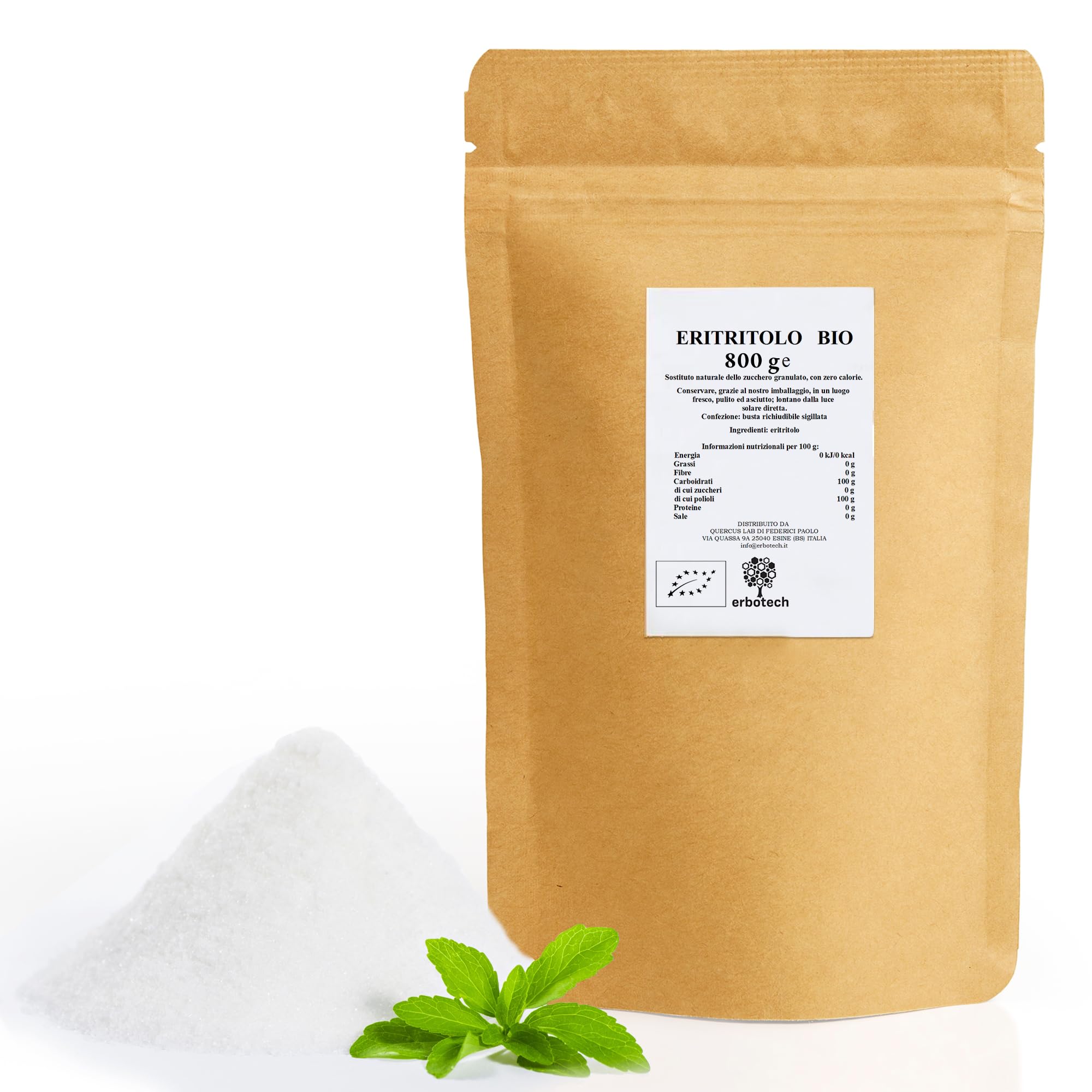 ERBOTECH Erythritol BIO in powder form, bag of 800 g, organic sugar substitute without calories, suitable for diabetics, vegans, without preservatives and colorants INGREDIENTS Organic erythritolERBOTECH - Erbotech is a company with a short production chain, where the herbal therapist and specialized staff are involved in all individual steps of the production process, from cultivation to harvest, from processing to packaging of the final product. The local origin of the raw materials allows processing to take place within hours of harvest, preserving the quantitative, phytochemical and organoleptic properties. VEGAN - Agar agar is a product obtained from the processing of red algae and is mainly used as a vegetable gelling agent in puddings, aspics and dessert jellies, especially in vegetarian and vegan cuisine. It has no calories and is only absorbed by the body to a very small extent. In addition, it is thermoreversible, meaning that the gelled mixture can be dissolved and resolidified several times. ORGANIC ERYTHRITOL - Erythritol powder is characterized by its sweet and fresh taste and, thanks to its special properties, is a perfect substitute for classic sweeteners! Because it is in powder form, it dissolves easily and fits perfectly into any recipe. It occurs naturally in fruits and other plant foods. ERITRITOLO - It's not an explosive. it's a bomb of ingredients for an explosion of sweetness without calories! Also known and listed on commercial labels as E968, it belongs to the polyols. It is of natural origin, as it is produced by the fermentation of sugars naturally present in plant foods and fruits, a property that makes it preferable to other chemical sweeteners. CONTENTS - You will receive at home a handy resealable bag with zipper, easy to carry and use, containing 800 g of erythritol powder. High-quality erythritol, completely natural and GMO-free, vegan, non-irradiated, ethically sourced, without additives, preservatives, fragrances, stabilizers or colorants. Suitable for diabetics (glycemic index 0).ERBOTECH Erythritol BIO in poedervorm, zak van 800 g, biologisch suikervervanger zonder calorieën, geschikt voor diabetici, veganisten, zonder conserveermiddelen en kleurstoffen ERBOTECH Erythritol BIO in poedervorm, zak van 800 g, biologisch suikervervanger zonder calorieën, geschikt voor diabetici, veganisten, zonder conserveermiddelen en kleurstoffen INGREDIËNTEN Biologisch erytritolERBOTECH - Erbotech is een bedrijf met een korte productieketen, waar de fytotherapeut en het gespecialiseerde personeel zich bezighouden met alle afzonderlijke stappen van het productieproces, van de teelt tot de oogst, van de verwerking tot de verpakking van het eindproduct. Dankzij de lokale herkomst van de grondstoffen kan de verwerking binnen enkele uren na de oogst plaatsvinden, zodat de kwantitatieve, fytochemische en organoleptische eigenschappen behouden blijven. VEGAN - Agar agar is een product dat wordt verkregen door de verwerking van rode algen en wordt voornamelijk gebruikt als plantaardig geleermiddel in puddingen, aspics en dessertgelei, vooral in de vegetarische en veganistische keuken. Het heeft geen calorieën en wordt slechts in zeer geringe mate door het lichaam opgenomen. Bovendien is het thermoreversibel, wat betekent dat het gegeleerde mengsel meerdere keren kan worden opgelost en weer gestold. BIOLOGISCHE ERYTHRITOL - Erythritolpoeder wordt gekenmerkt door zijn zoete en frisse smaak en is dankzij zijn bijzondere eigenschappen een perfecte vervanger voor klassieke zoetstoffen! Omdat het in poedervorm is, lost het gemakkelijk op en past het perfect in elk recept. Het komt van nature voor in fruit en andere plantaardige voedingsmiddelen. ERITRITOLO - Het is geen explosief. het is een bom van ingrediënten voor een explosie van zoetheid zonder calorieën! Ook bekend en vermeld op commerciële etiketten als E968, behoort het tot de polyolen. Het is van natuurlijke oorsprong, aangezien het wordt geproduceerd door de fermentatie van suikers die van nature aanwezig zijn in plantaardige voedingsmiddelen en fruit, een eigenschap die het de voorkeur geeft boven andere chemische zoetstoffen. INHOUD - U ontvangt thuis een handige hersluitbare zak met ritssluiting, gemakkelijk mee te nemen en te gebruiken, met 800 g erythritolpoeder. Hoogwaardige erythritol, volledig natuurlijk en GMO-vrij, veganistisch, niet bestraald, van ethische oorsprong, zonder toevoegingen, conserveermiddelen, geurstoffen, stabilisatoren of kleurstoffen. Geschikt voor diabetici (glycemische index 0).