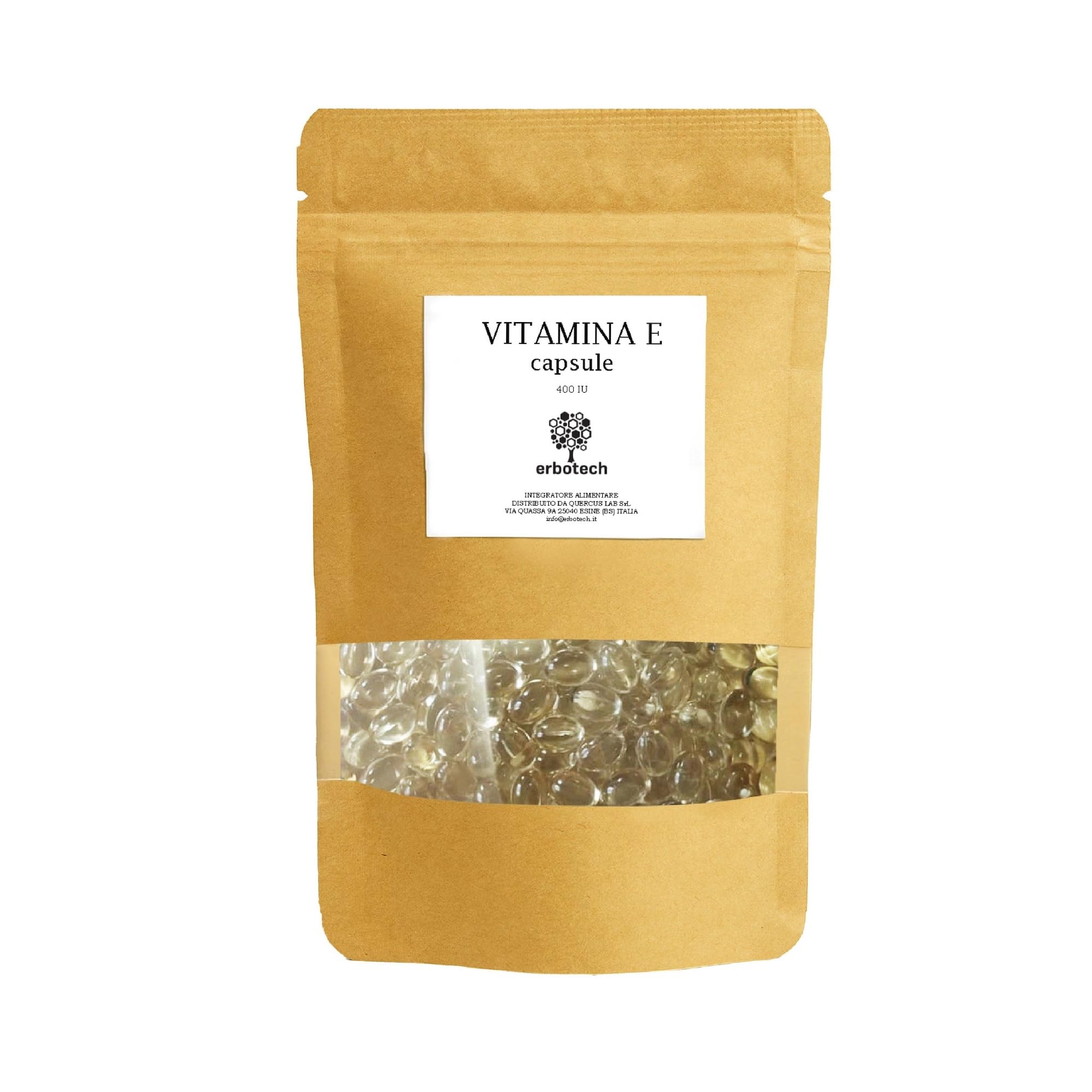 : Erbotech Vitamin E, pack of approximately 100 capsules, 400 IU, vitamin E supplement, protects cells against oxidative stress, 72g. Ingredients: Olive oil, vitamin E (alpha-tocopherol acetate). Softgel capsule: Gelatin, vegetable glycerin, water. Nutritional Information per serving (1 capsule): Vitamin E 400 IU. NRV (Nutrient Reference Values) 2000 . Directions: Take 1 capsule every 3 days. Warnings: Do not exceed the recommended daily intake. Keep out of reach of young children. Do not use during pregnancy. Do not use in case of liver dysfunction or disease.
