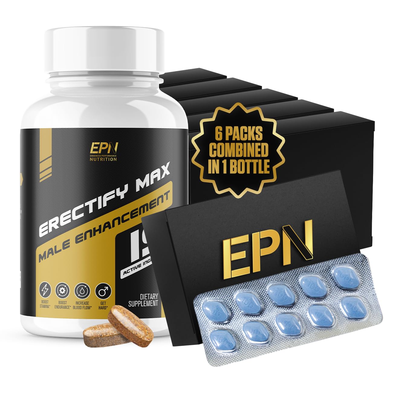 : . . , . . : , . . Blue boxes not included. All capsules are included in single bottle. Safety Disclaimer: This product is a dietary supplement and is not intended to diagnose, treat, cure, or prevent any disease. Its effects claims are not guaranteed and have not been scientifically proven or evaluated by a third party or physician. This supplement is not a replacement for professional medical care or prescribed treatments. Use of this product should be preceded by consultation with a licensed healthcare provider, as rare side effects may occur. THIRD PARTY TESTED: ERECTIFY MAX is third-party tested by an acrcedited labratory and manufactured inside a Regulated and cGMP compliant facility so you can stay hard knowing what you're putting inside your body is 100 banned substance free!. EMPOWER YOUR ENDURANCE: Break free from the limitations of the ordinary and embrace a world of limitless possibilities. ERECTIFY MAX empowers you with unmatched stamina, allowing you to outlast expectations and go the distance. Enjoy a newfound endurance that paves the way for prolonged pleasure and satisfaction. RAPID-ACTION FORMULA: Time is of the essence, and ERECTIFY MAX understands the urgency of the moment. Our fast-acting formula ensures you're ready for action whenever desire strikes. Experience the thrill of swift absorption, letting you unleash your potential at a moment's notice. ENHANCED LIBIDO: ERECTIFY MAX Male Enhancement doesn't just awaken desire – it transforms it into a fiery blaze, rekindling the embers of your passion. Experience an irresistible surge of energy that ignites your inner desires, bringing you closer than ever to the intense pleasure you crave. SUPERIOR BLOOD FLOW: Elevate your experience with the unrivaled power of improved blood circulation to crucial areas. Feel the rush as ERECTIFY MAX optimizes blood flow, ensuring stronger, more robust woody's that last longer. It's not just about satisfaction it's about reaching new heights of pleasure and performance.