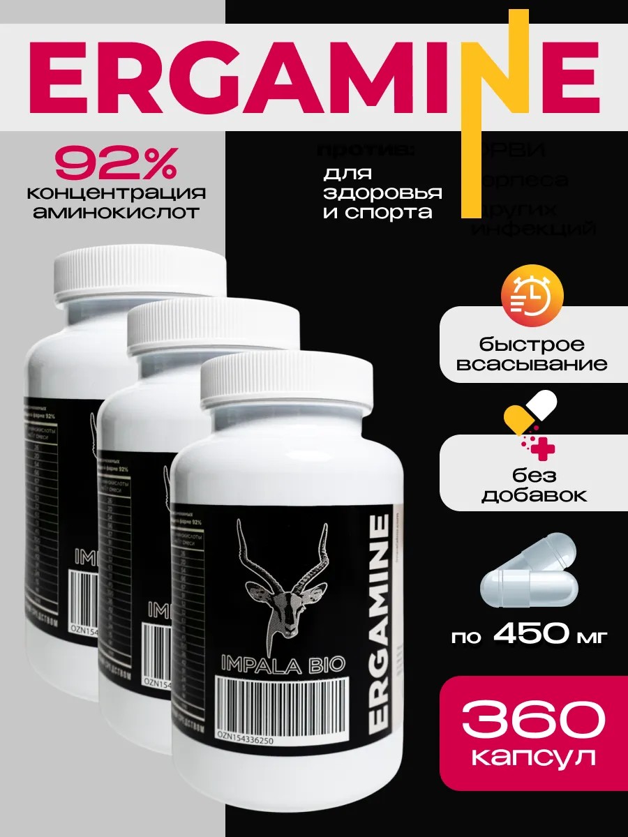 Аминокислотный комплекс в капсулах для здоровья, все самое необходимое одном продукте. Курс приема с выраженным эффектом: по 4 капсулы два раза в день на протяжении 45 дней. Логотип антилопы это гарантия того, что продукция "Импала биотехнологические системы", остальные продавцы покупают продукт у нас. Комплекс аминокислот, не имеющий аналогов–18 аминокислот в капсулах «Эргамин». Фасовка может производиться в настоящее время в белые и прозрачные банки. В состав препарата входят 8 незаменимых и 10 заменимых аминокислот в свободной форме 92% от общей массы продукта. Ни один продавец подобной продукции не раскрывает уровень свободной (молекулярной) формы входящих в его состав элементов. Незаменимые кислоты или EAA могут поступать в организм человека только с пищей. Вещества находятся в количестве, близком к яичному белку альбумину–эталону диетического питания.