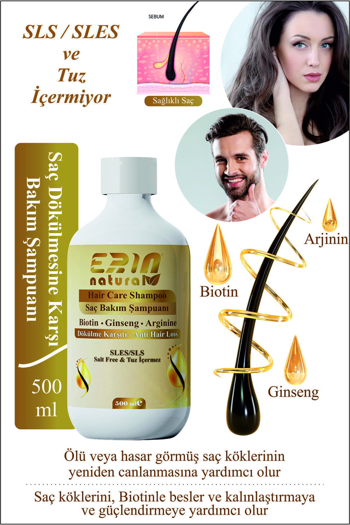 Erin Natural Anti Hair Loss Care Shampoo - Sulfate Free & Salt Free 500 ml
