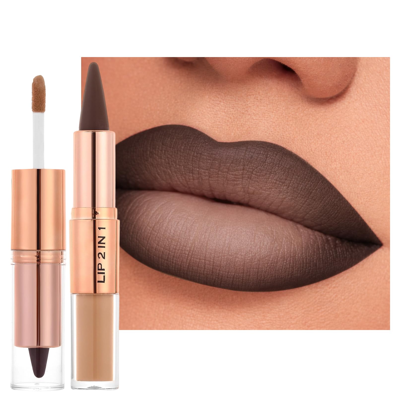 Erinde 2-en-1 Crayon à Lèvres Lip Gloss, Rouge a Levre Matte et Lip Liner Mat, Haute Pigmentation, Longue Tenue, Formule Nourrissante pour des Lèvres Plus Pleines. 01 Matte