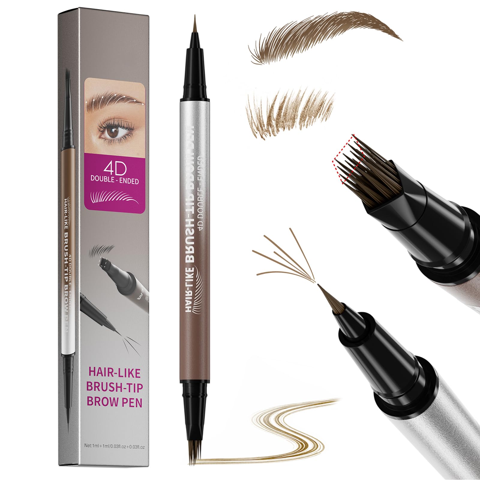 5. Universal Shades: Available in versatile shades to suit a variety of hair colors and skin tones. Ideal for everyday natural looks, bold statements, or precise touch-ups on the beard, hairline, and scalp. 4. Waterproof and Long-Lasting: The 24-hour smudge-proof formula resists sweat, humidity, and rain. Your brows stay precise all day long, with intense, clean, defined color and no smudging or fading. 3. Precision Tip: The fine tip provides maximum control when defining the brow arch, tightening the tail, and defining individual lines. Perfect for structured, clear contours and microblade-like detailing. 2. 4D Microblading Brush: The innovative brush creates ultra-fine, hair-like strokes that blend seamlessly with real brows. Ideal for filling in sparse areas, creating natural fullness, or achieving lifted brown looks. 1. Dual tip 2-in-1: combines a 4D microblading brush and a precision fine tip in one pen. Allows for both surface filling and precise definition, so you can create every brow shape quickly and cleanly.Erinde Crayon à sourcils Microblading 2 en 1 à double extrémité, 4D Eyebrow Pencil avec 2 pointes, imperméable et résistant aux taches, couleur longue durée, remplissage facile, sourcils naturels N 01 : marron clair5. Teintes universelles : disponible en nuances polyvalentes, adaptées à différentes couleurs de cheveux et tons de peau. Idéal pour les looks naturels du quotidien, les déclarations puissantes ou les retouches précises sur la barbe, la racine des cheveux et le cuir chevelu. 4. Imperméable et durable : la formule 24H résistante aux taches résiste à la sueur, à l'humidité et à la pluie. Vos sourcils restent précis tout au long de la journée, avec des couleurs intenses et propres définies, sans bavures ni décoloration. 3. Pointe de précision : la pointe fine offre un contrôle maximal lors de la définition de l'arc des sourcils, du resserrement de la queue et de la définition de lignes individuelles. Parfait pour les contours structurés et clairs et les détails similaires aux microblades. 2. 4D Microblading Brush : la brosse innovante crée des traits ultra-fins semblables à des poils qui se fondent parfaitement dans de vrais sourcils. Idéal pour remplir les zones lumineuses, pour une plénitude naturelle ou pour des looks de marron liftés. 1. Double pointe 2 en 1 : combine une brosse microblading 4D et une pointe fine de précision dans un stylo. Permet à la fois un remplissage en surface et une définition précise, de sorte que vous pouvez créer chaque forme de brow rapidement et proprement.