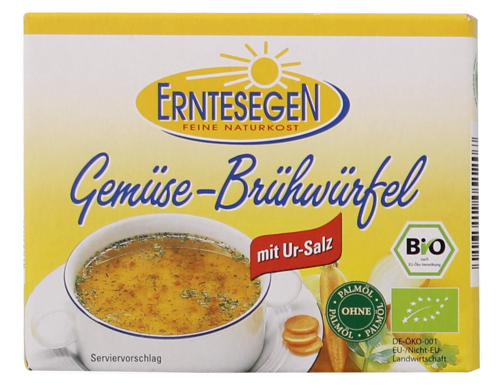 Processing: Vegetable percolation cubes German organic labels, EU label. INGREDIENTS Stone salt, shea butter, glucose syrup, corn starch, 2.4 carrot, 2.4 leek, yeast extract, caramel sugar, 1.2 onion, mace, parsnip powder, 0.7 panac powder, concentrated vegetable juice, carrots, onions, garlic, parsley, turmeric, salt, 0.1 pumpkin powder, stump root, sunflower oil, stump leaves, fennel seeds. INSTRUCTIONS FOR USE For seasoning food, fine broth, and spiced kettle. SAFETY WARNING Allergy Information: Contains: celery. Not in production: fish, tree nuts, peanuts, sesame, lupine, soft toys. See more
