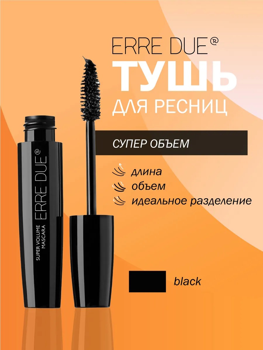 ERRE DUE Super Volume Mascara идеально подходит для создания различных образов — от естественного дневного макияжа до яркого вечернего. Тушь легко наносится и распределяется по ресницам, не оставляя комочков и не склеивая их.
