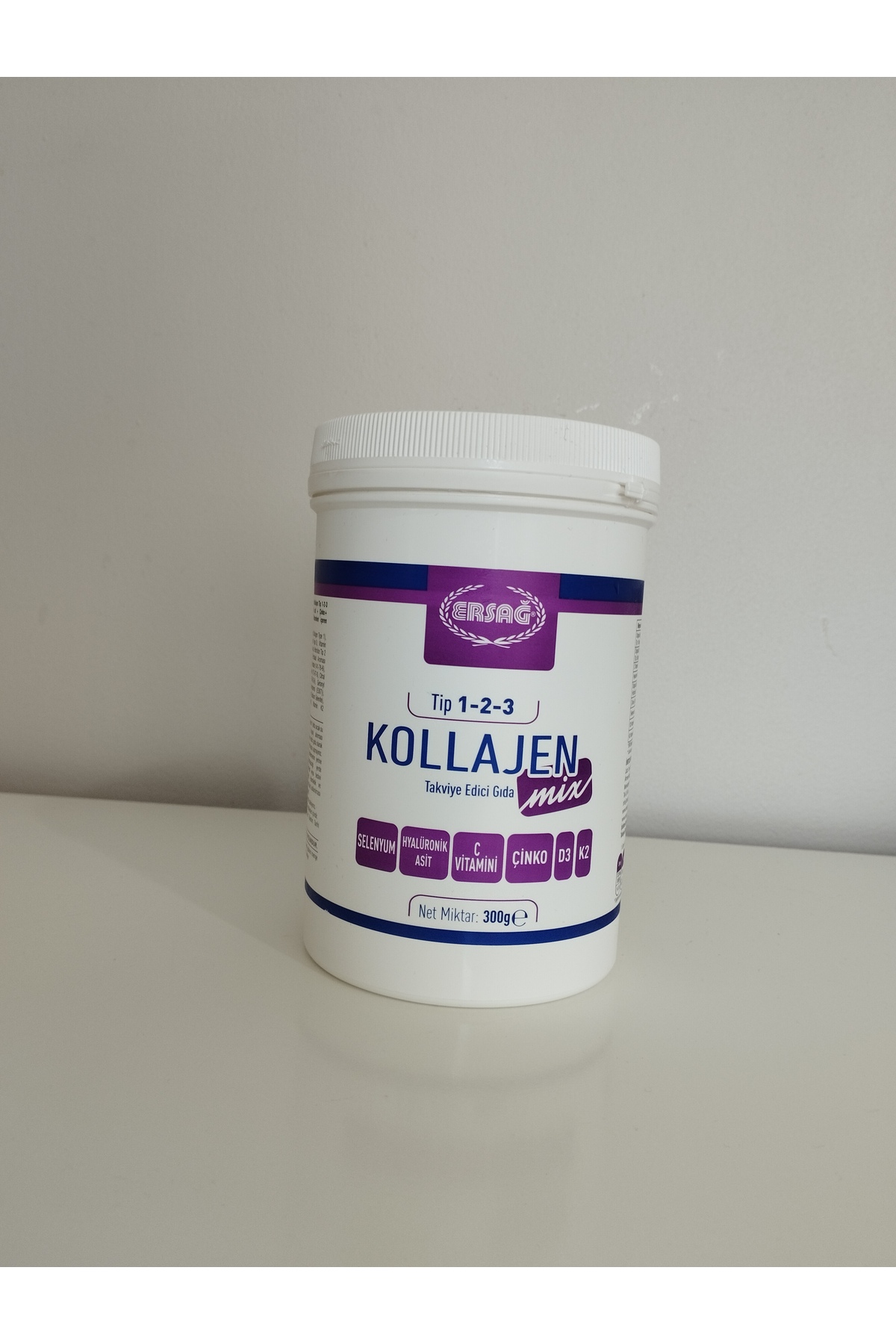 • : Ersag Collagen Mix (Type-1-2-3) is produced as a food supplement. It does not contain fillers or additives. The product's ingredients are listed in the product ingredients table. Ingredient Name One Scoop 1 Hydrolyzed Type 1 Collagen (Hydrolyzed Collagen Type 1) 7500 mg 2 Hydrolyzed Type 3 Collagen (Hydrolyzed Collagen Type 3) 1800 mg 3 Vitamin C (Ascorbic Acid) 460 mg 4 Hyaluronic Acid (Sodium Hyaluronate) 100 mg 5 Hydrolyzed Type 2 Collagen (Hydrolyzed Collagen Type 2) 100 mg 6 Zinc 3.64 mg 7 Selenium 27 mcg 8 Vitamin D3 (Cholecalciferol) 25 mcg 9 Vitamin K2 (Menaquinone) 12 mcg Usage: It is recommended to take 10 g in hot water or beverage once a day for adults. Storage: Store in a cool and dry place. User Group: For adults 11 years of age and older. The Batch Number and Best Before Date (BEST) are on the packaging. IT COMPLIES WITH THE TURKISH FOOD CODEX. The country of origin of the main ingredient of the food is different from the country of origin of the food itself. Country of Origin: Turkey. Produced in accordance with the Turkish Food Codex with Business Registration Number: TR-20-K-014963. Ersag Collagen Mix (Type 1-2-3) Approval Number: 011612-06.10.2021. Ersag Collagen Mix (Type 1-2-3) was produced in Ersag Facilities as a food supplement.