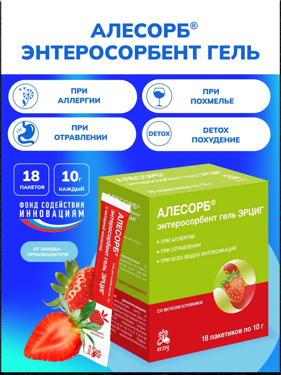 АЛЕСОРБ «Энтеросорбент гель ЭРЦИГ» - гель для приема внутрь со вкусом клубники.