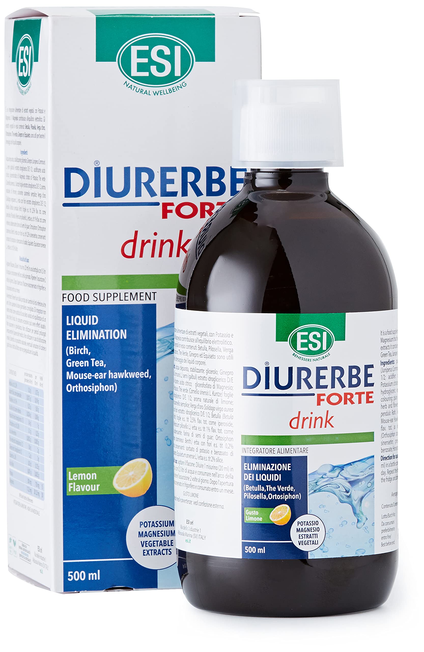 And yes Diurerbe strong drink Indications It helps to fight the feeling of tired, heavy legs at the end of the day, reduces gliedemi lower limbs caused by phenomena of poor circulation or alimentarescorretta diet, reduces swelling of the body due to increased diuresis, increases in a natural drainage fluids from the tissues, decreg ilristagno of fluids and toxins in the body. Dosage and method of use Dilute 1-2 scoops (20-40 ml) in a water bottle (1.5 lt.) And consume nell'arcodella day. Characteristics Dietary supplement of magnesium and potassium, with plant extracts. Components Apple juice concentrate juniper berry extract hydroglycerin magnesioglicerofosfato Green tea leaf extract hydroglycerin Solidago aerial parts estrattoidroglicerico birch leaves dry extract potassium citrate pilosella whole plant ortisiphon leaves dry extract horsetail whole plant. Format 500 ml bottle.