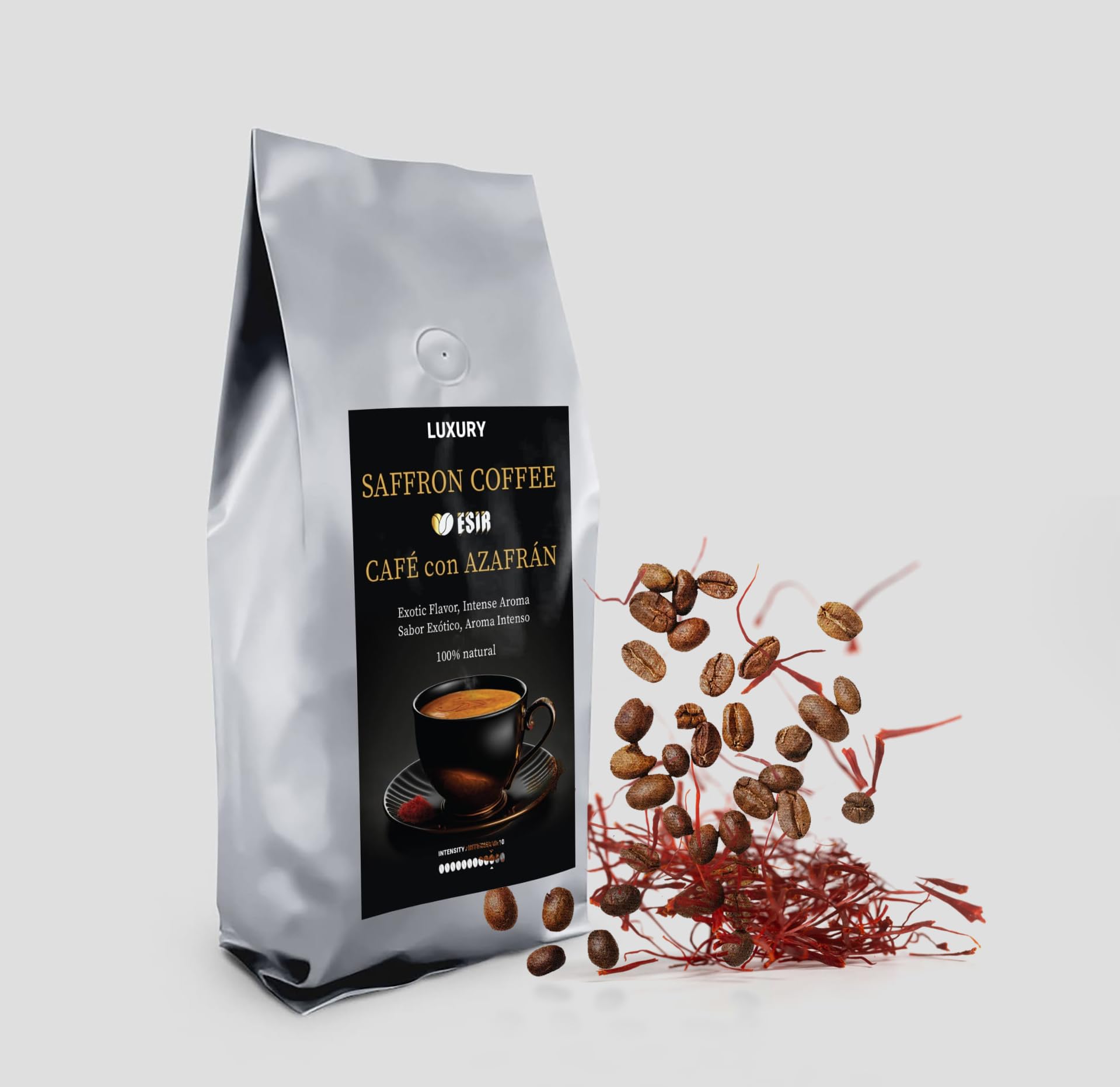 Esir. Caf torr fi moulu au safran - Sachet 200 g M lange Gourmet de caf et de safran de haute qualit 100% Naturel (Pack of 1 Safran)
