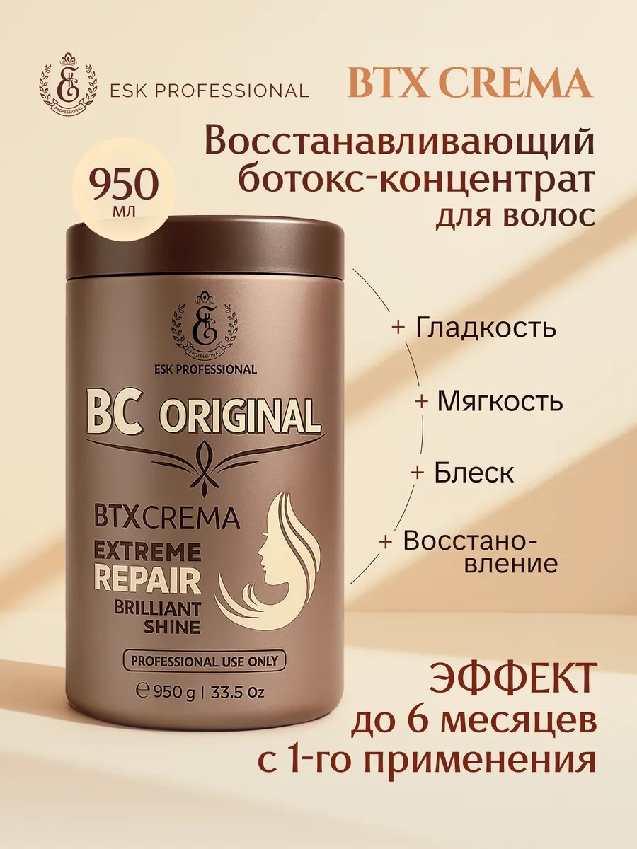 BTX CREMA Botox Hair Concentrate (950 g) is an active system designed to reconstruct hair.