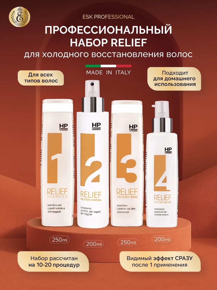 Состав набора: Shampoo Relief, 250 мл (рН 4,5-5,5) - мягкий шампунь для сухих и поврежденных волос. Деликатно очищает структуру волос, возвращает мягкость и блеск, глубоко насыщая волосы протеинами. Содержит в составе гидролизованные протеины сои, пшеницы, лимонную кислоту, кератиновые аминокислоты, пантенол, натуральный мёд, гидролизованные дрожжи. P