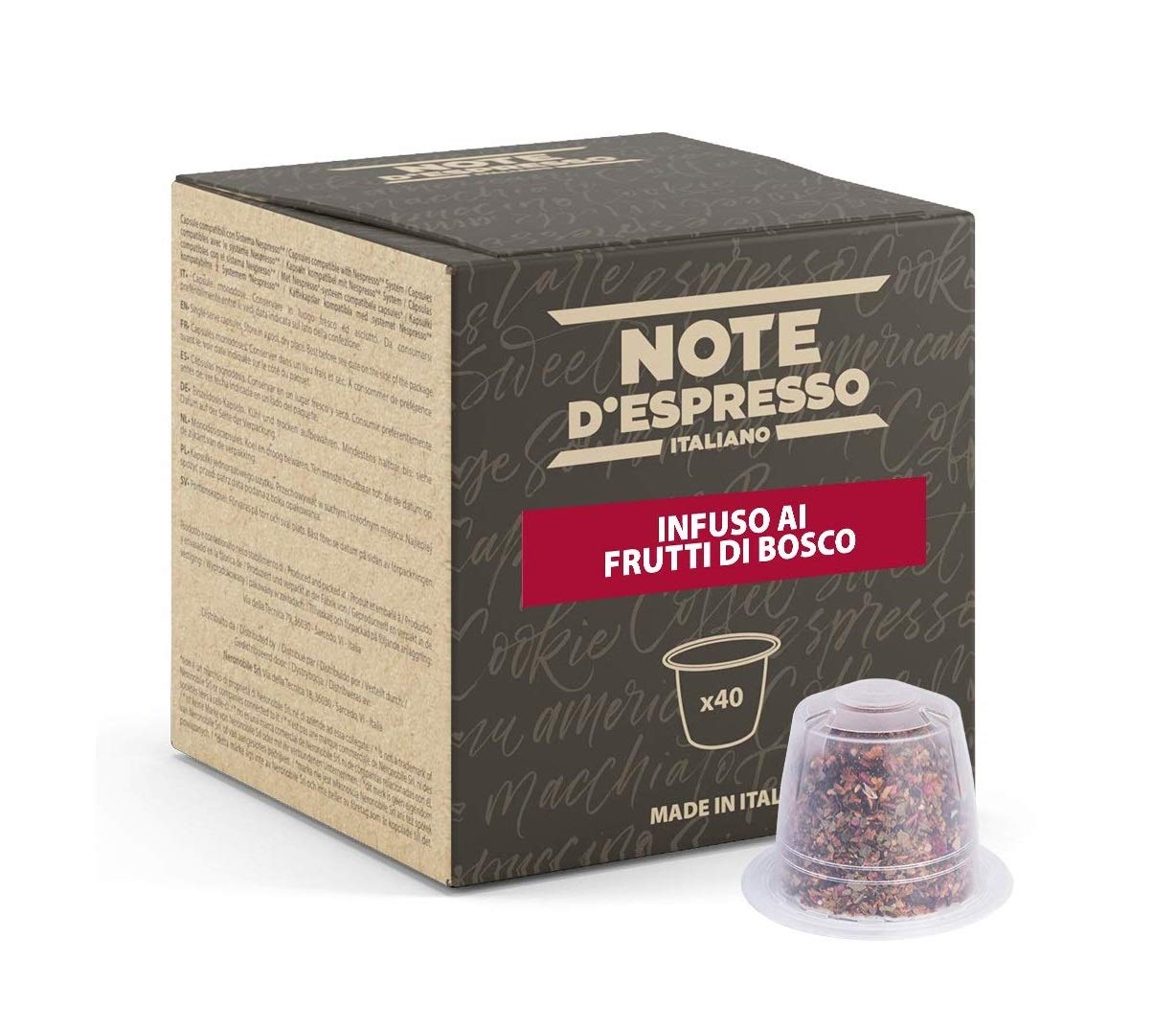 RED FORREST FRUIT Infusion Nespresso Compatible capsule 40x3g. Is not a trademark of Neronobile Srl, or companies connected to it. INGREDIENTS Hibiscus, apple pomace, apples, mulberry leaves, flavorings (blackcurrant, concentrated blackcurrant juice) (strawberries, concentrated strawberry juice), citric acid, blackberry flavor, strawberry pomace, rosehip, blackcurrant pomace, strawberry flavor. INSTRUCTIONS FOR USE 1. Ensure the Nespresso machine is switched on and ready for use. 2. Open the capsule compartment of the machine. 3. Place a coffee capsule in the compartment. 4. Close the capsule compartment. 5. Select the desired coffee volume or strength on the machine. 6. Press the start button to start the coffee preparation process. Visit our BRAND STORE to discover the entire NOTE D'ESPRESSO selection direct link under the product title. Recommended water dose 150 ml. Convenient pack of 40 new generation capsules fully certified for oxygen barrier (even out of the bags, they do not lose their aroma, ideal for those who use drawers or capsule holders). Made in Italy. Enjoy the delicious taste and aroma of a quality red fruit infusion in an ultra-practical 2 gram capsule format. Exclusively compatible with NESPRESSO capsule machines (Not registered with EU S.a.r.l.). RED FORREST FRUIT Infusion Nespresso Compatible capsule 40x3g. Is not a trademark of Neronobile Srl, or companies connected to it. INGRÉDIENTS Hibiscus, marc de pommes, pommes, feuilles de mûrier, arômes (cassis, jus de cassis concentré) (fraises, jus de fraise concentré), acide citrique, arôme mûre, marc de fraises, cynorhodon, marc de cassis, arôme fraise. MODE D'EMPLOI 1. S'assurer que la machine Nespresso est allumée et prête à l'emploi. 2. Ouvrir le compartiment de la capsule de la machine. 3. Placer une capsule de café dans le compartiment. 4. Fermer le compartiment de la capsule. 5. Sélectionner le volume ou la force de café souhaité sur la machine. 6. Appuyer sur le bouton de mise en marche pour démarrer le processus de préparation du café. Visitez notre BRAND STORE pour découvrir toute la sélection NOTE D'ESPRESSO lien direct sous le titre du produit. Dose d'eau recommandée 150 ml. Paquet pratique de 40 capsules de nouvelle génération entièrement certifiées pour la barrière de l'oxygène (même hors des sacs, elles ne perdent pas leur arôme, idéal pour ceux qui utilisent des tiroirs ou des porte-capsules). Fabriquée en Italie. Profitez du goût et des arômes délicieux d'une infusion aux fruits rouges de qualité dans un format capsule de 2 grammes ultra-pratique. Exclusivement Compatibles avec les machines NESPRESSO à capsules (Non enregistré auprès d' EU S.a.r.l.).