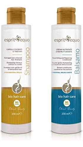 INGREDIENTS A delicate phyto-active blend of lavender essential oil, millet extract, Damask rose water, and plant-based phyto-keratin with proven restructuring and nourishing properties.Subjected to microbiological, dermatological, and nickel testing. No animal testing (as required by Italian law and European directives). Certified organic cosmetic (CCPB) with a minimum of 95 naturally derived ingredients. Free from harsh surfactants (SLS, ALS, SLES), petroleum derivatives, formaldehyde, mineral oils, silicones, parabens, synthetic fragrances and colorants, and GMOs. Contains only natural active ingredients: a delicate phyto-active blend of lavender essential oil, millet extract, Damask rose water, and plant phyto-keratin with proven restructuring and nourishing properties. Detangles hair without weighing it down, facilitating styling while leaving it soft, shiny, and light. Organic shampoo for hair damaged by treatments and coloring: gently works on the hair fiber, repairing and restructuring it deeply, leaving it softer and shinier. Also suitable for frequent washing.ESPRIT EQUO COSMESI BIOLOGICA Traitement bio cheveux colorés et traités shampooing baume crème nourrissante et restructuranteDESCRIPTION DU PRODUIT INGRÉDIENTS Un délicat mélange phyto-actif d'huile essentielle de lavande, extrait de millet, eau de rose damassée et phyto-kératine végétale aux capacités restructurantes et nutritives éprouvéesSous place à des tests microbiologiques, dermatologiques et au nickel. Non à test sur les animaux (comme la loi italienne et les directives européennes). Cosmétique biologique certifié (CCPB) avec un minimum de 95 d'ingrédients d'origine naturelle ne contient pas de tensioactifs agressifs (SLS, ALS, SLES), substances dérivées du pétrole, formaldéhyde, huiles minérales, silicones, parabènes, parfums et colorants d'origine synthétique, OGM. Actifs uniquement naturels : un délicat mélange phyto-actif d'huile essentielle de lavande, extrait de millet, eau de rose damassée et phyto-kératine végétale aux capacités restructurantes et nutritives éprouvées. Démêle les cheveux, sans les alourdir et favorise le coiffage tout en les laissant doux, lumineux et léger. Shampooing biologique pour cheveux abîmés par les traitements et les colorations : agit doucement sur la fibre des cheveux en les réparant et en les restructurant en profondeur, les rendant plus doux et brillants. Convient également pour les lavages fréquents.