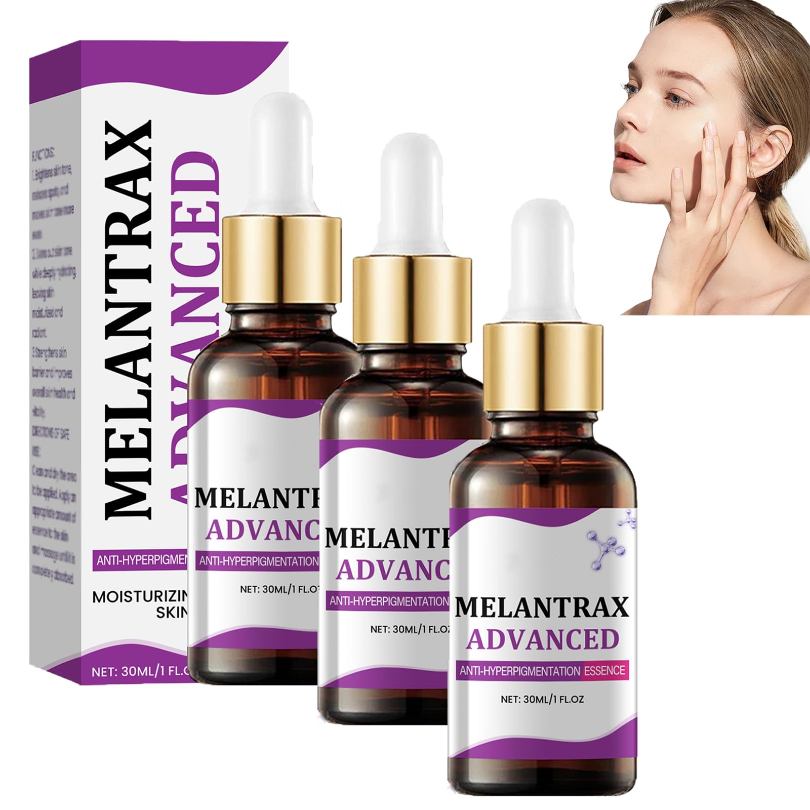 Essence anti-hyperpigmentation avancée Melantrax, sérum visage Epiglow Melanex, traitement anti-taches brunes et anti-âge, crème nettoyante en profondeur pour le visage (3pcs)