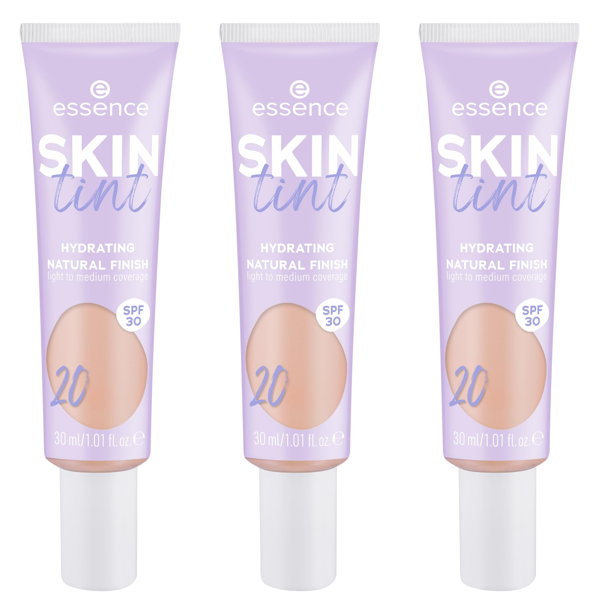 In a convenient MULTI pack. Essence Skin Tint 20 evens out minor skin imperfections with its light to medium coverage. It's also incredibly lightweight and feels wonderful on the skin. Our skin tint won't clog pores and is a light alternative to foundation. It's moisturizing, and its vegan ingredients include aloe vera and hyaluronic acid. For every occasion and mood, you can create a custom look with Essence Skin Tint 20. With SPF 30, it also protects your skin from the sun. We are committed to animal testing. Cosnova is listed internationally with essence and CATRICE by PETA Germany and PETA. INGREDIENTS Ingredients: Aqua (Water), Tributyl Citrate, Butylene Glycol, Dicapyllyl Ether, Triazone, Myristyl Lactate, C13-15 Alkane, Silica, Diethylamino Hydroxybenzoyl Hexybenzoyl L Benzoate E, Bis-Ethylhexyloxyphenol Methoxyphenyl Triazine, Polyglyceryl-6 Polyricinoleate, Polyglyceryl-6 Polyhydroxystearate, Talc, Magnesium Sulfate, Dimethicone Vinyl Dimetharate, Hicone Cross, Aloe Barbadensis Leaf Juice Powder, Sodium Hyaluronate, Tocopherol, Cetyl Alcohol, Dextrin Palmitate, Polyglycerin 6, Triethoxycapylsilane, Xanthan Rubber, Phenoxyethanol, 7CI. Product reference: 7491 (iron oxides), CI 77492 (iron oxides), CI 77499 (iron oxides), CI 77891 (titanium dioxide). INSTRUCTIONS FOR USE Moisturizing makeup. Light to medium coverage. Pleasantly lightweight and long-lasting. SPF 30. See moreMoisturizing, natural. We say no to animal testing. Cosnova is listed internationally with essence and CATRICE by PETA Germany and PETA. Vegan, oil-free, SPF 30, fragrance-free, paraben-free, microplastic-free, nanoparticle-free, gluten-free, acetone-free. With SPF 30, aloe vera, and hyaluronic acid. Light to medium coverage. Super lightweight and pleasant texture.essence SKIN Lot de 3 teints de maquillage, n 20, hydratant, naturel, végétalien, sans huile, filtre UVA et UVB, SPF 30, sans parfum, 3 x 30 mlDESCRIPTION DU PRODUIT DESCRIPTION DU PRODUIT Dans un pack pratique MULTI. L'essence Skin Tint 20 compense les petites irrégularités de votre peau avec son pouvoir couvrant léger à moyen. En même temps, il est super léger et agréable au toucher. Notre teint pour la peau n'obstrue pas les pores et est une alternative légère au fond de teint. Il est hydratant et ses ingrédients végétaliens comprennent l'aloe vera et l'acide hyaluron. Pour toutes les occasions et votre humeur, vous pouvez construire l'essence SKIN tint 20. Avec SPF 30, il protège également votre peau du soleil. Nous disons non à l'expérimentation animale. Cosnova est répertorié internationalement avec essence et CATRICE chez PETA Allemagne et PETA. INGRÉDIENTS Ingrédients : aqua (eau), citrate de tributyle, glycol butylène, éthers dicapylylyl, triazone, myristyl lactate, alcane C13-15, silica, diéthylamino, hydroxybenzoyle hexybenzoyl. L Benzoate E, BIS-ETHYLHEXYLOXYPHENOL METHOXYPHENYL TRIAZINE, POLYGLYCERYL-6 POLYRICINOLEATE, POLYGLYCERYL-6 POLYHYDROXYSTÉARATE, TALC, SULFATE MAGNÉSIUM , DIMETHICONE VINYL DIMETARATE. Hicone Cross. Poudre de jus de feuille d'aloe barbadensi, hyaluronate de sodium, tocophérol, alcool cetyl, palmitate de dextrine, polyglycérine 6, triéthoxycapylsilane, xanthane caoutchouc, phénoxyéthanol, 7CI. Référence produit : 7491. (oxydes de fer), CI 77492 (oxydes de fer), CI 77499 (oxydes de fer), CI 77891 (dioxyde de titane). MODE D'EMPLOI Maquillage hydratant. Couvrance légère à moyenne. Agréablement léger et durable. SPF 30. Voir plusHydratant, naturel. Nous disons non à l'expérimentation animale. Cosnova est répertorié internationalement avec essence et CATRICE chez PETA Allemagne et PETA. Végétalien, sans huile, SPF 30, sans parfum, sans paraben, sans microparticules plastiques, sans nanoparticules, sans gluten, sans acétone. Avec SPF 30, aloe vera et hyaluron. Couvrance légère à moyenne. Texture super légère et agréable.