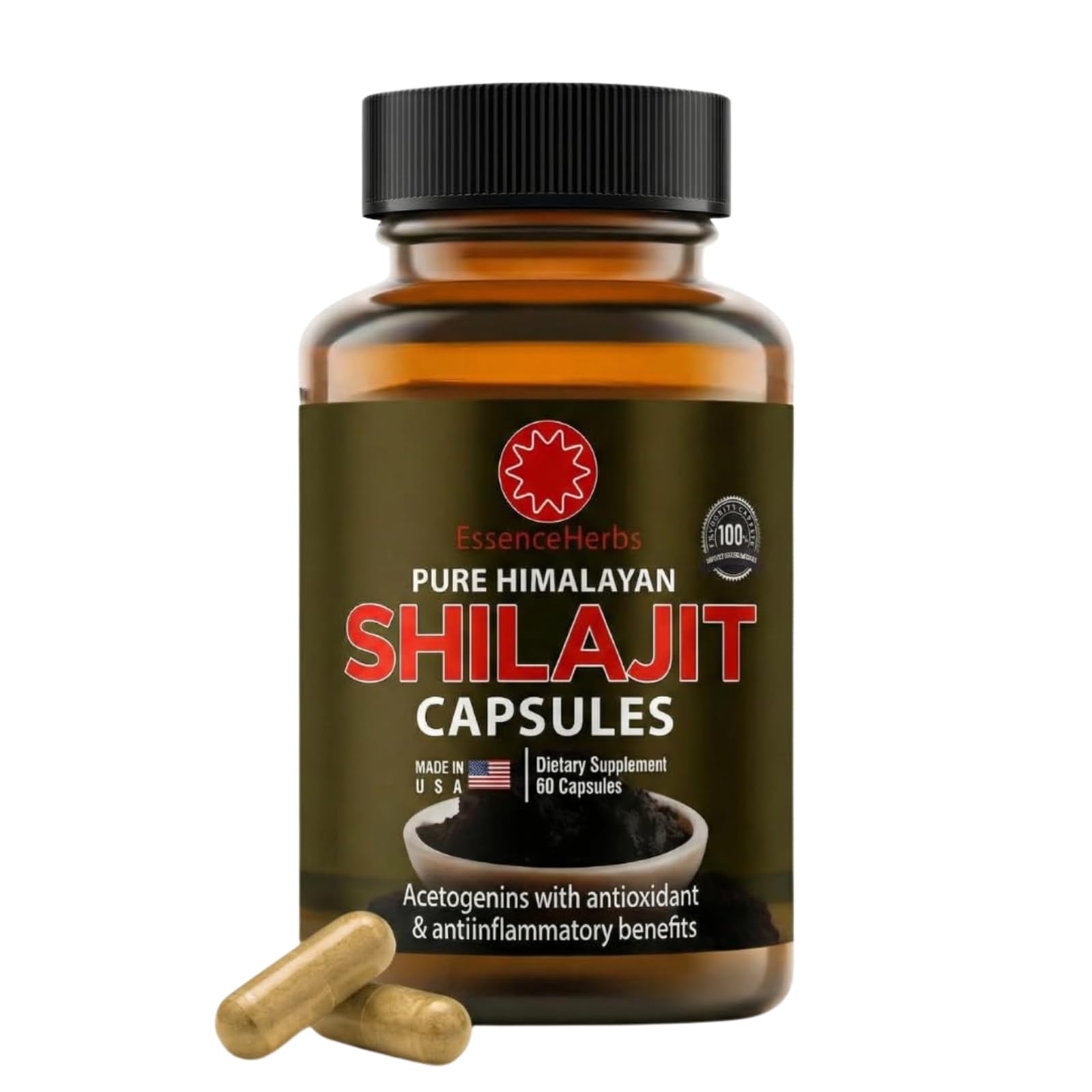 Essence Herbs Shilajit Capsules for Men & Women Pure Himalayan Shilajit with Ashwagandha Tongkat Ali & Black Seed Supports Energy & Gut Balance Non-GMO Vegan 60 Capsules