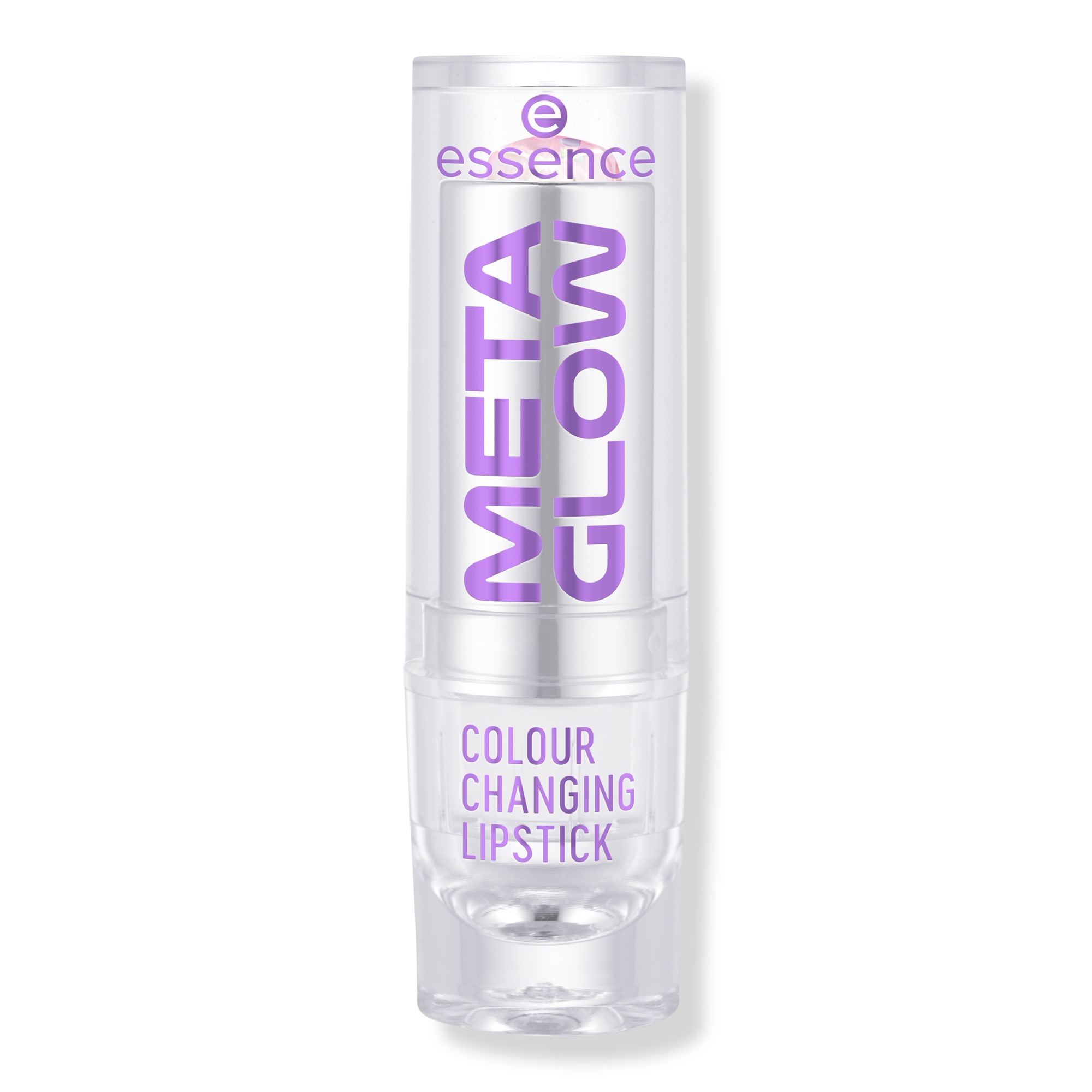Experience the wow with Essence Meta Glow Color Changing Lipstick! pH-reactive magic creates a personalized soft pink, universally flattering. Semi-transparent with holo flakes, easy to apply, and oh-so-comfortable.