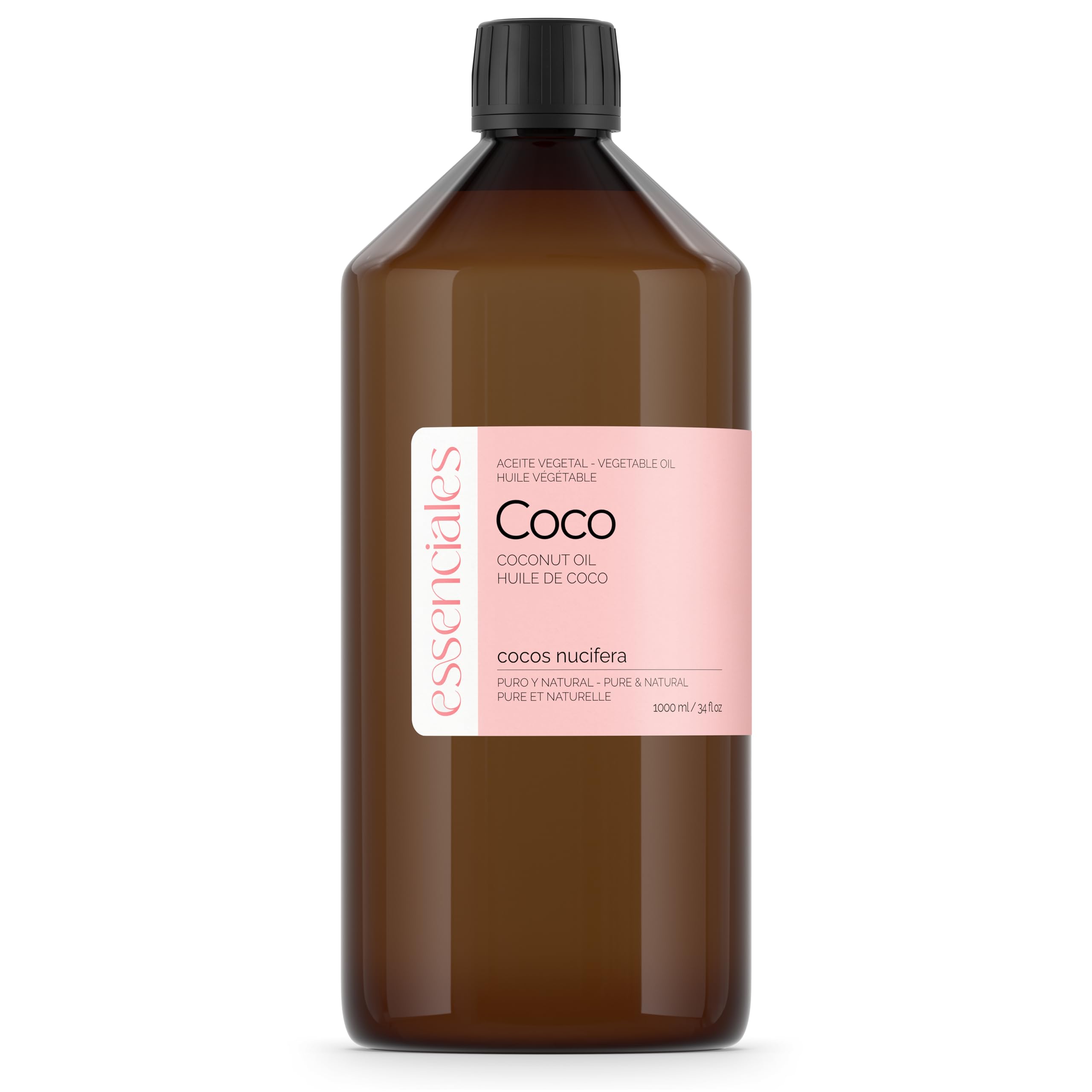 Essenciales - Huile végétale de noix de coco BIO, 100 pure et certifiée écologique, 1 litre Huile végétale de noix de coco nucifère, 1ère pression froide