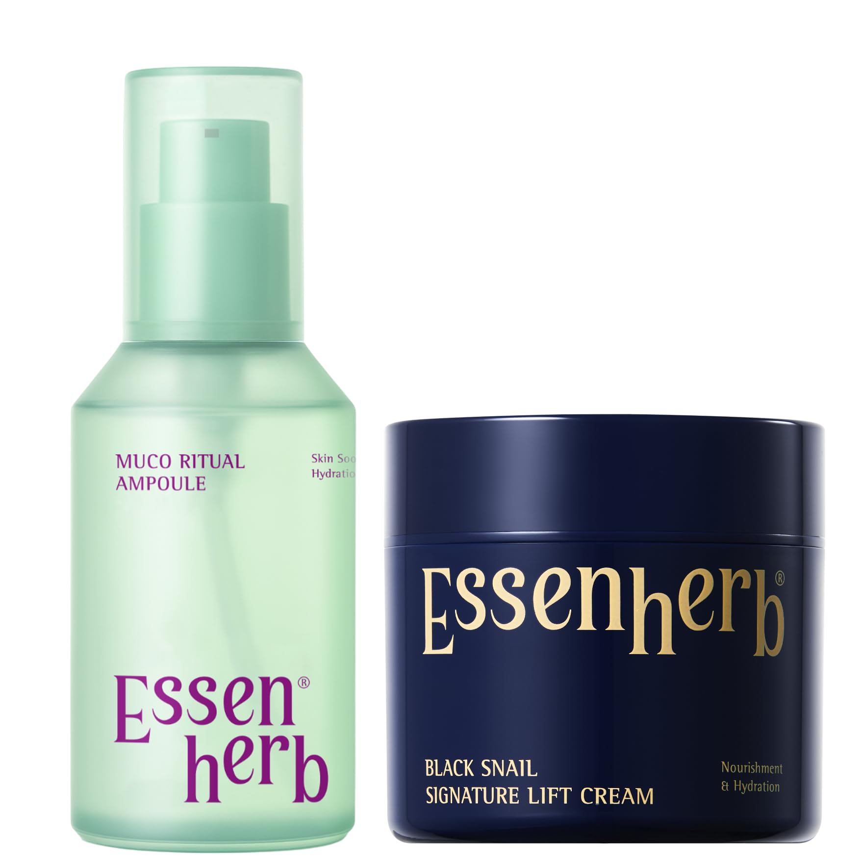 ESSENHERB Muco Ritual Ampoule + Black Snail Signiature Lift Cream | Korean Vegan Aloe Serum with 95% Aloe Polysaccharides Firming Moisturizer with 65% Snail Mucin
