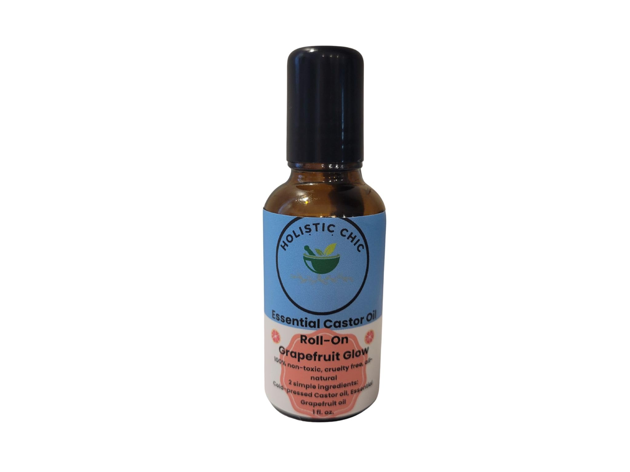 Discover the luxurious benefits of Grapefruit Glow Mini Castor Oil Roll-on by Holistic Chic. This versatile roll-on combines cold-pressed castor oil with a hint of mild, refreshing grapefruit essential oil for a deeply moisturizing experience. Perfect for targeted application, this non-toxic formula is ideal for all skin types, from babies to adults. The convenient mini roll-on applicator makes it easy to apply this vegan, hypoallergenic solution wherever needed. Free from parabens, petroleum, hexane, and harsh chemicals, this gentle formulation works as both a moisturizer and skin protectant, great for lips, fine lines and chronically dry spots. The non-GMO formula is specially crafted for sensitive skin and provides deep moisturizing and anti-aging benefits. Made in the US, this unisex product is suitable for the whole body and aligns perfectly with organic and holistic lifestyles. The practical mini size makes it ideal for travel or on-the-go use. For external use only, this premium oil blend comes in a liquid-sealed bottle to maintain freshness and efficacy.PRODUCT SPECS: Contains 1 fl oz of premium castor oil blend in a travel-friendly bottle, no refrigeration required. QUALITY FORMULATION: Non-GMO, vegan, petroleum-free, paraben-free, and chemical-free formula ideal for sensitive skin, 2 simple ingredients. VERSATILE USE: Suitable for all skin types from babies to adults, can be used as a daily moisturizer and skin protectant for the whole body, targeting lips, fine lines, and crevices. CONVENIENT APPLICATION: Roll-on applicator design allows for precise, mess-free application of this nourishing oil blend. NATURAL INGREDIENTS: Made with pure castor oil and infused with grapefruit essential oil, perfect for gentle moisturizing and skin protection.
